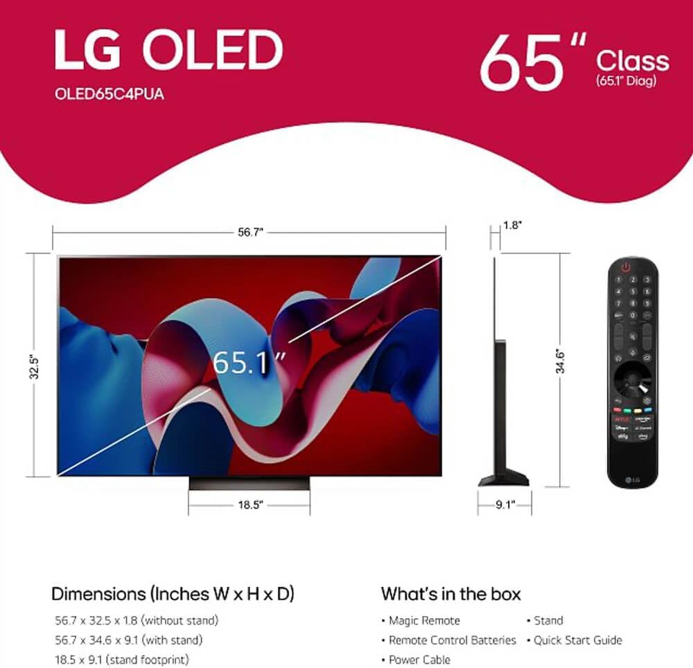 LG C3 Series 65-Inch Class OLED evo 4K Processor Smart Flat Screen TV for Gaming with Magic Remote AI-Powered OLED65C3PUA, 2023 with Alexa Built-in (Renewed)
