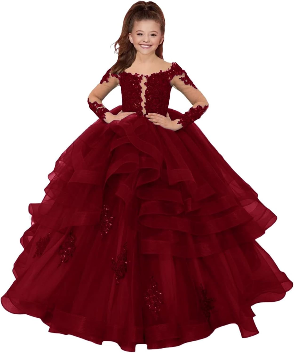 Vestido de tul con estampado de princesa y flores para niña Cierre con cordón 💖 Material: el brillante vestido floral de múltiples capas para niña fabricado en tul, material agradable al tacto para niños, muy suave y cómodo, cuello barco, manga larga, dobladillo de varias capas con cola, decoración reflectante en el vestido, hace que tu princesa brille y hermosa 💕 Selección de talla: la edad recomendada es solo de referencia. Nuestra talla es diferente a la talla de Amazon. Antes de realizar el pedido, selecciona la talla del vestido de acuerdo con nuestra tabla de tallas en la imagen de la izquierda. Si tiene alguna pregunta, no dude en ponerse en contacto con nosotros. 🎀 Consejos cálidos: lávala por separado para evitar que se manche con agua limpia a temperaturas normales. Lavar a mano con agua fría y colgar para secar, así prolongará la vida útil de la ropa. 🍀 Ocasión: ideal para bodas, fiestas navideñas, primera comunión, graduación, quinceañera, ceremonia, fiesta nocturna, desfile, cumpleaños, vestido de baile, sesión de fotos artística, dama de honor, concurso de belleza, festival, fiesta temática de princesas, retrato de familia, Día del Niño, baile escolar, baile de graduación, ceremonia, vacaciones, playa, actuación u otras ocasiones especiales. 🔥 Vestidos de tul con apliques de encaje 3D para novia, cuello de barco, múltiples capas, fiesta, baile, manga larga, vestidos de desfile, vestido de fiesta, vestido largo de princesa para niños, vestido de tul para primera comunión, fiesta formal, boda, vestido de niña con flores