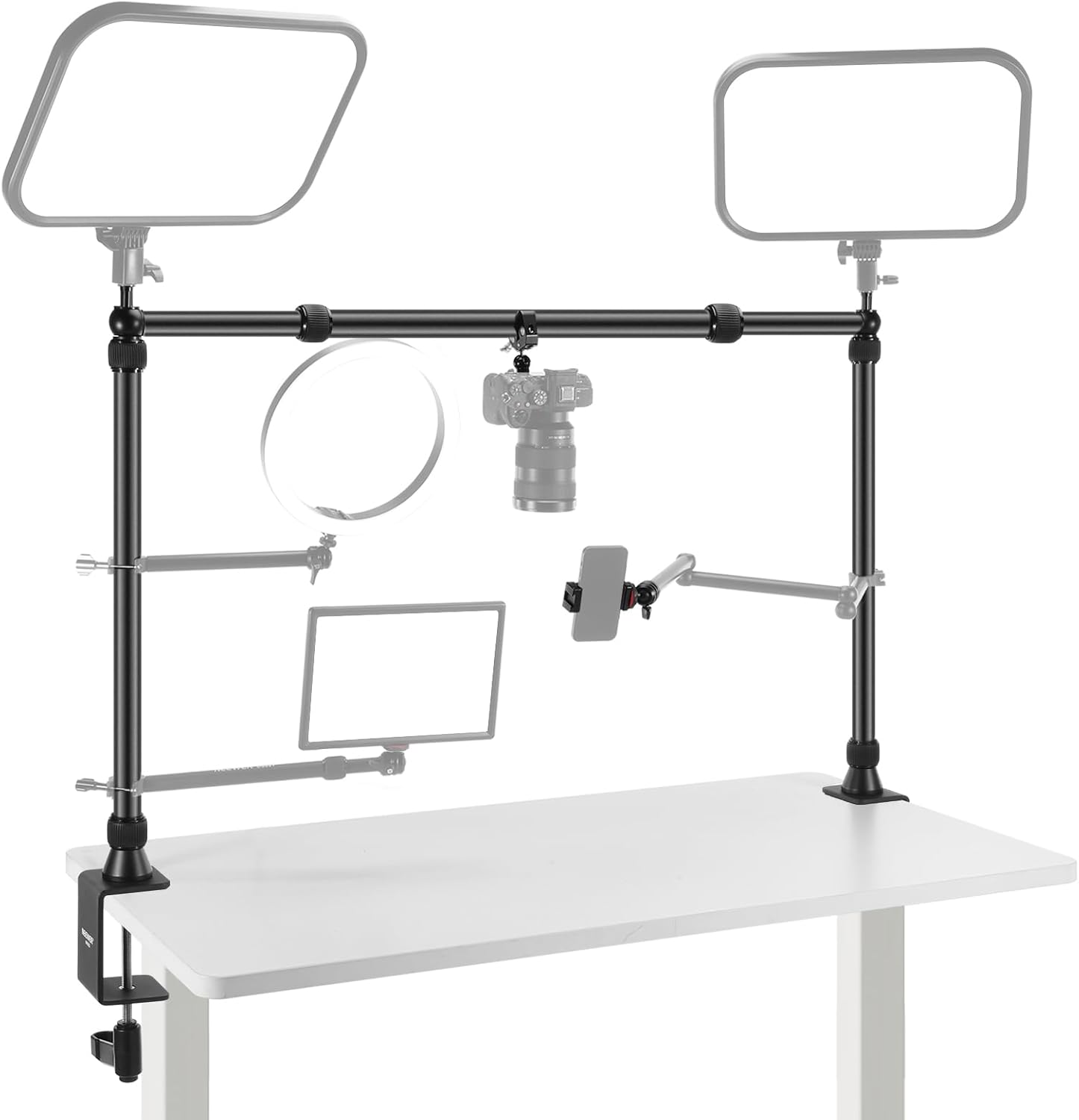 NEEWER Overhead Camera Mount Rig with 2 Ball Heads, Super Clamp/Mobile Phone Holder/Camera Desk Mount, Multi Device Mount, Platform Overhead Tripod, Adjustable Height Width, Max Load 12 kg, NK002