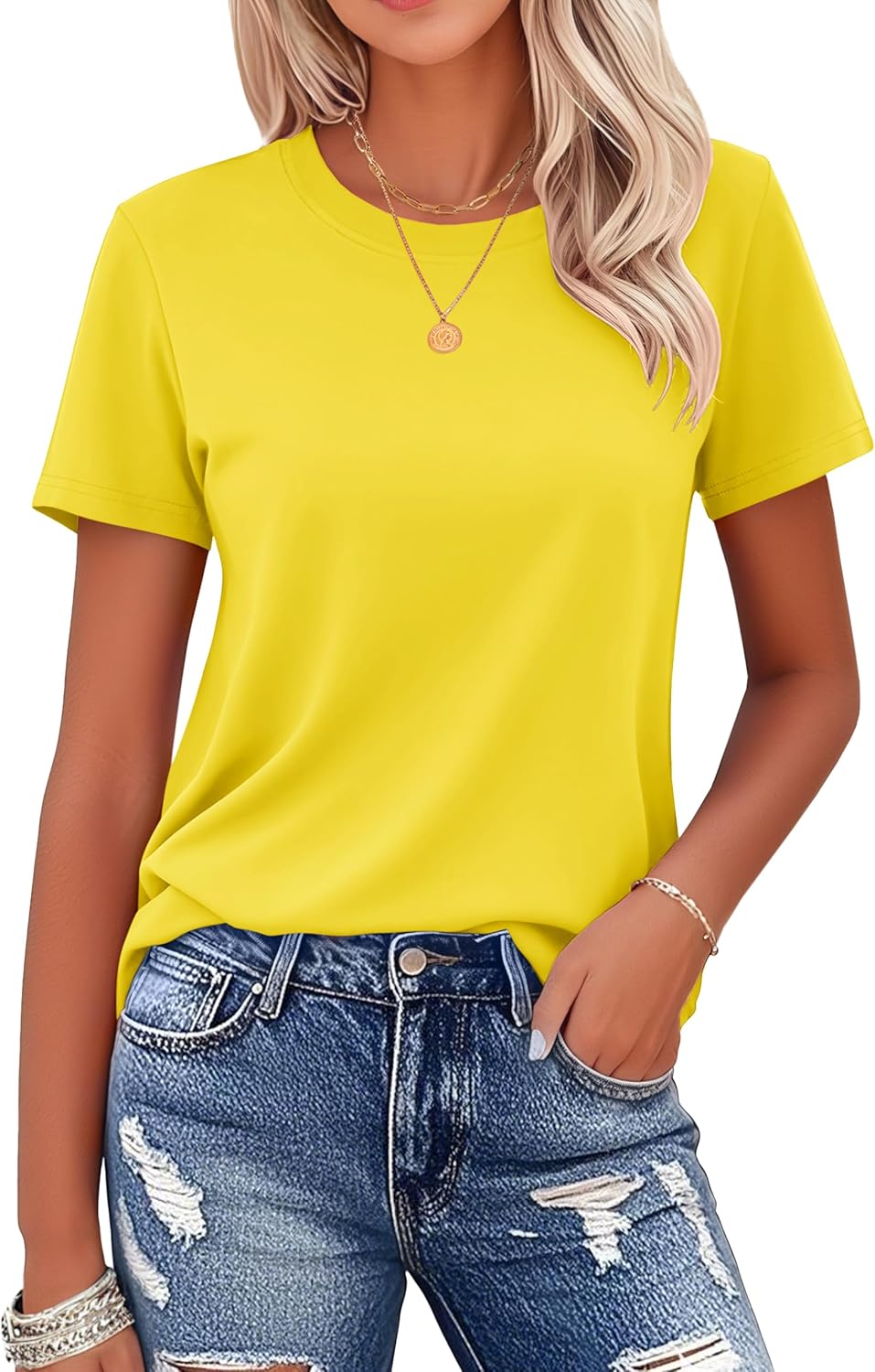 MAGCOMSEN Women's Cotton T-Shirts Short-Sleeve Shirts Crew-Neck Tops Classic-Fit Breathable Casual Summer Tees