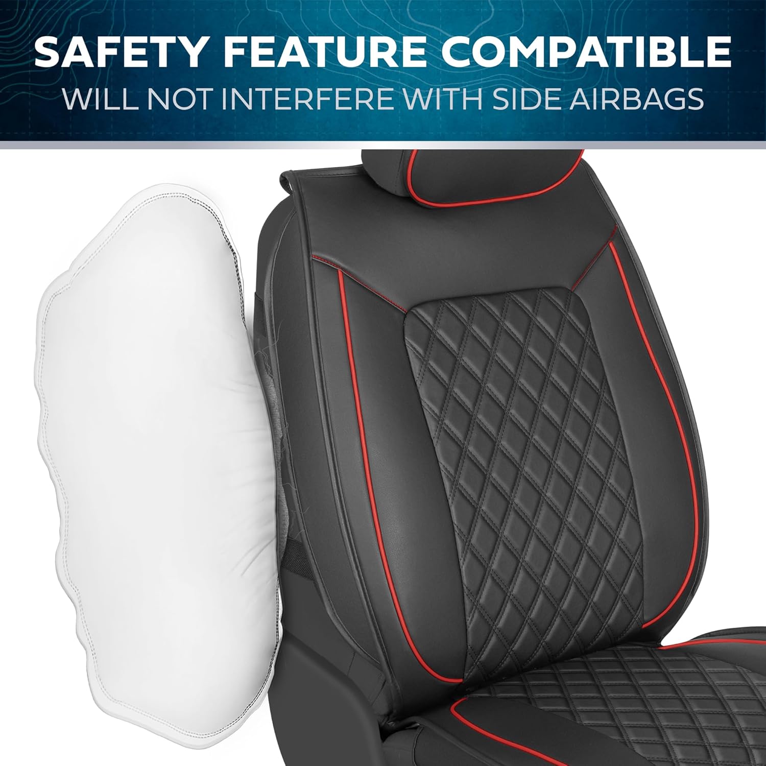 SEMI-UNIVERSAL FIT: Designed to fit most vehicles including cars, trucks, and SUVs. These seat covers offer a flexible fit for standard seats, but the FRONT SEATS are not compatible with molded headrests, built-in seatbelts, or seats with armrests. Please check your seat design before purchasing.