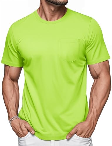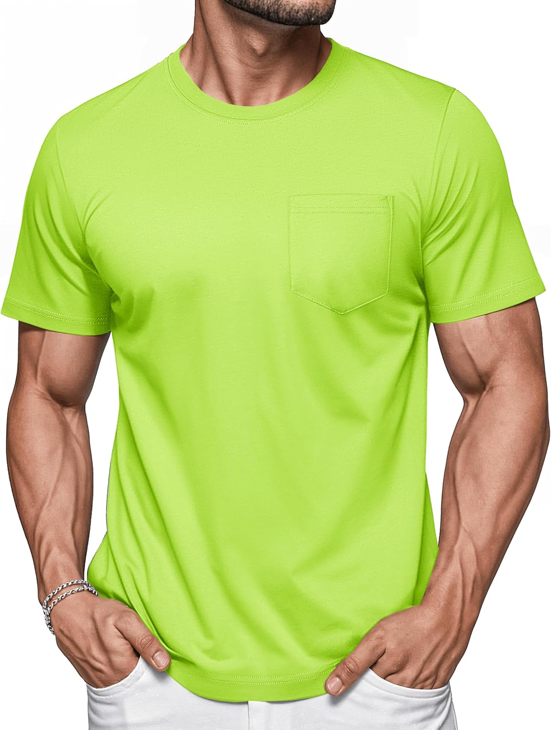 MAGCOMSEN camiseta de manga corta con bolsillo y bolsillo, camiseta de algodón, cuello redondo, corte regular, camisa con cuello acanalado para hombre