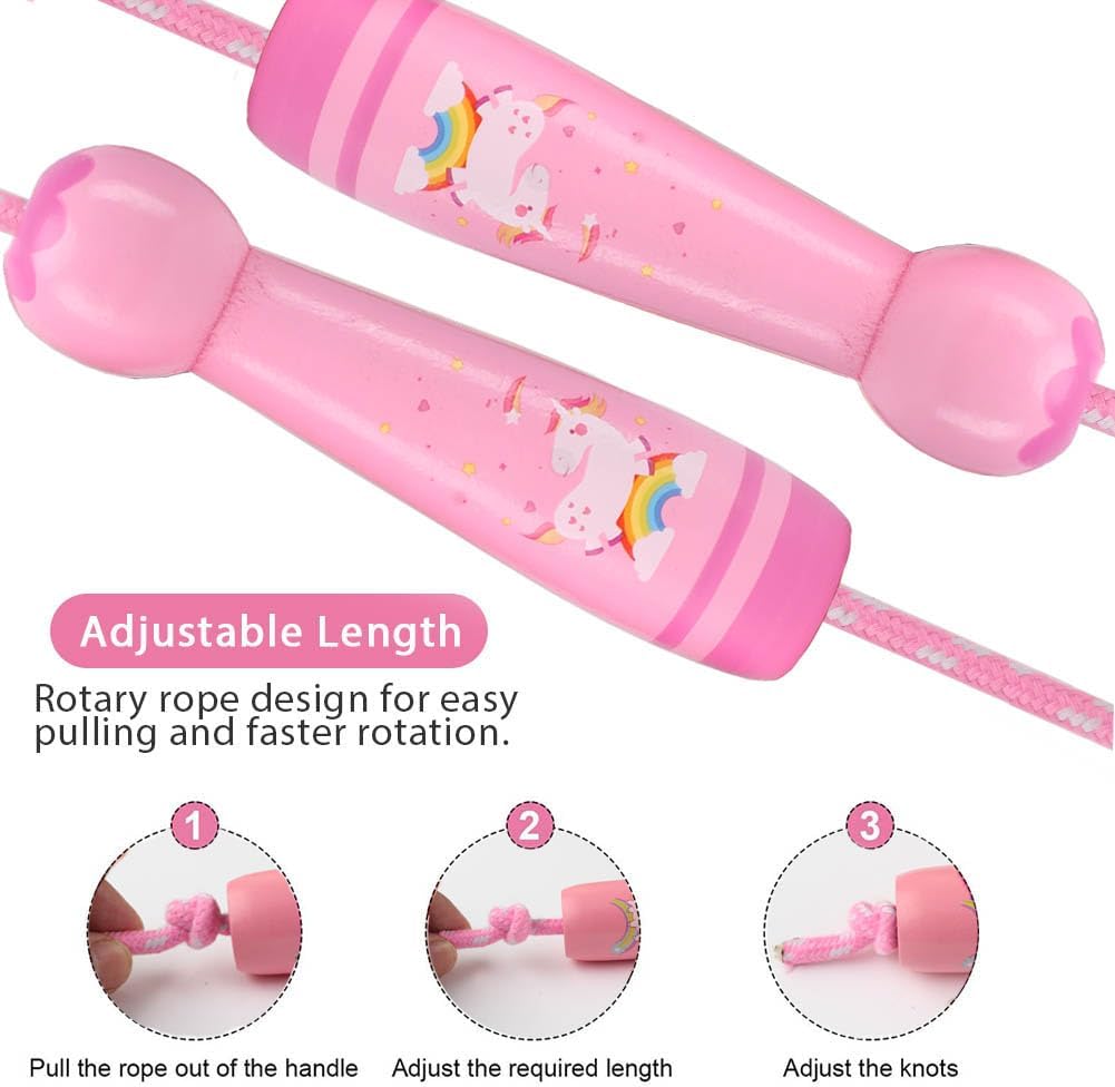 Jump Rope for Kids, Adjustable Toddler Jump Rope with Wooden Handle and Cotton Rope, Cute Skipping Rope for Boys and Girls Fitness Workout Exercise 8.5 Ft(Pink)