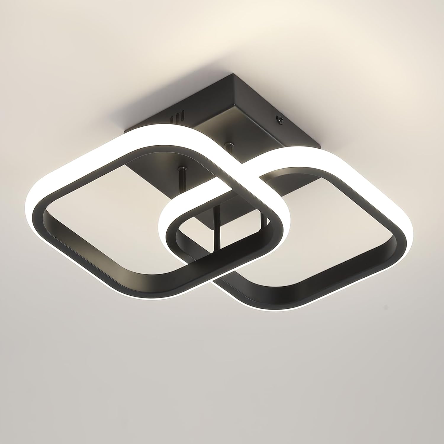 Diseño Perfecto: La lámpara de techo negra moderna utiliza dos diseños cuadrados negros simples, el ángulo de los dos cuadrados de la lámpara de techo LED se superponen, añadiendo una belleza tridimensional a las lámparas de techo del pasillo. El diseño moderno de lámpara de techo LED negra añade las características de la lámpara de techo moderna y la lámpara de techo industrial.