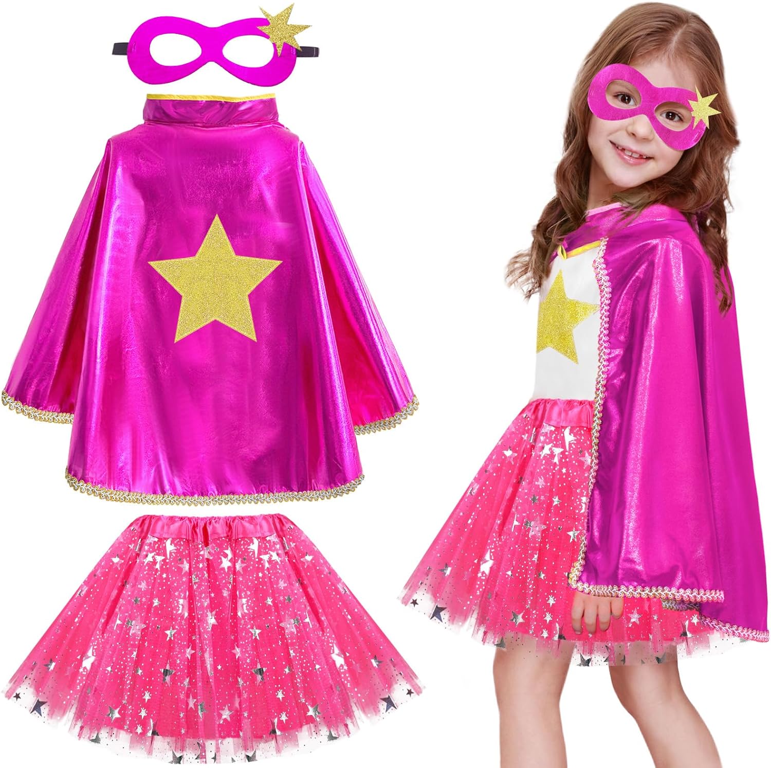 iROLEWIN Superhero-Capes for Kids Superhero-Costumes for Girls Toddler Princess Dress-Up Big-Sister-Gifts Christmas Party Toy