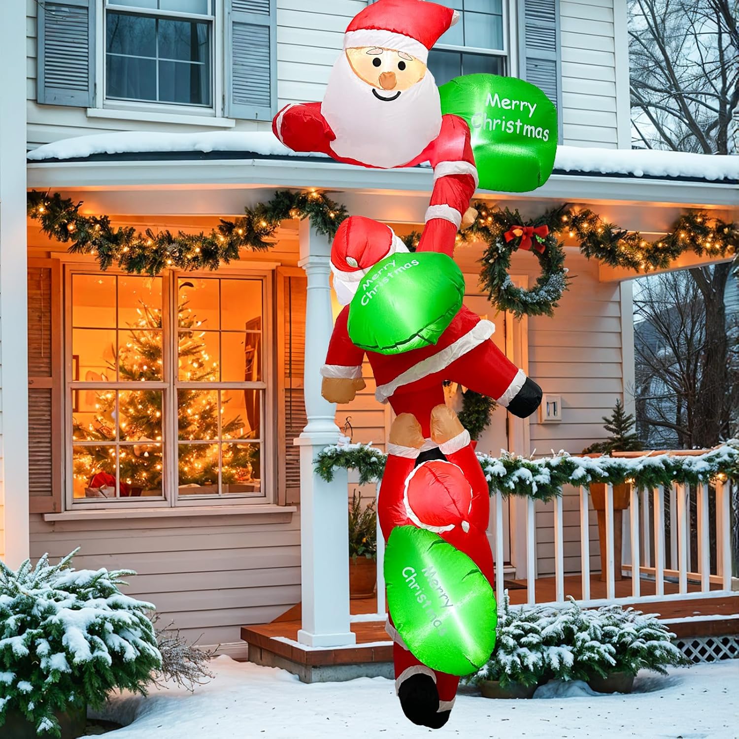 【Perfecta decoración navideña para exteriores】: Crea una atmósfera festiva y alegre en tu jardín o porche con estos inflables navideños para exteriores. Su expresión jovial y movimiento de escalada transmiten una sensación de alegría y anticipación navideña. Ya sea que estés organizando una fiesta de Navidad o simplemente quieras mejorar el ambiente festivo, este gigante inflable navideño añade un toque de magia y trae sonrisas a todos los que lo ven.