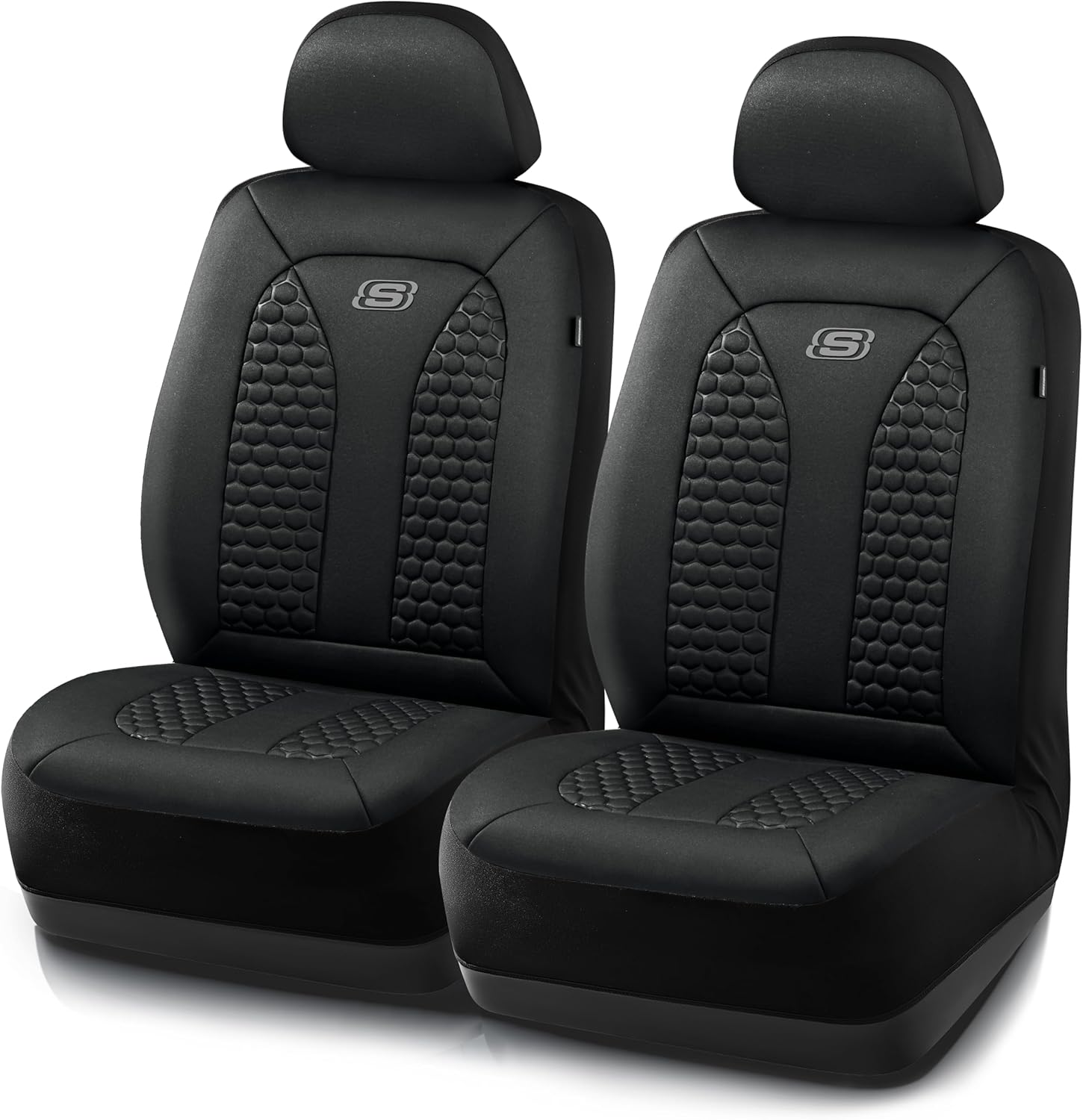 Skechers Memory Foam™ Car Seat Covers, Hexcomb Breathable Thick Seat Covers Black Two Front Seat Covers, Airbag Compatible, Automotive Comfort & Protection for Most Cars,Van,Trucks, SUVs (Black)