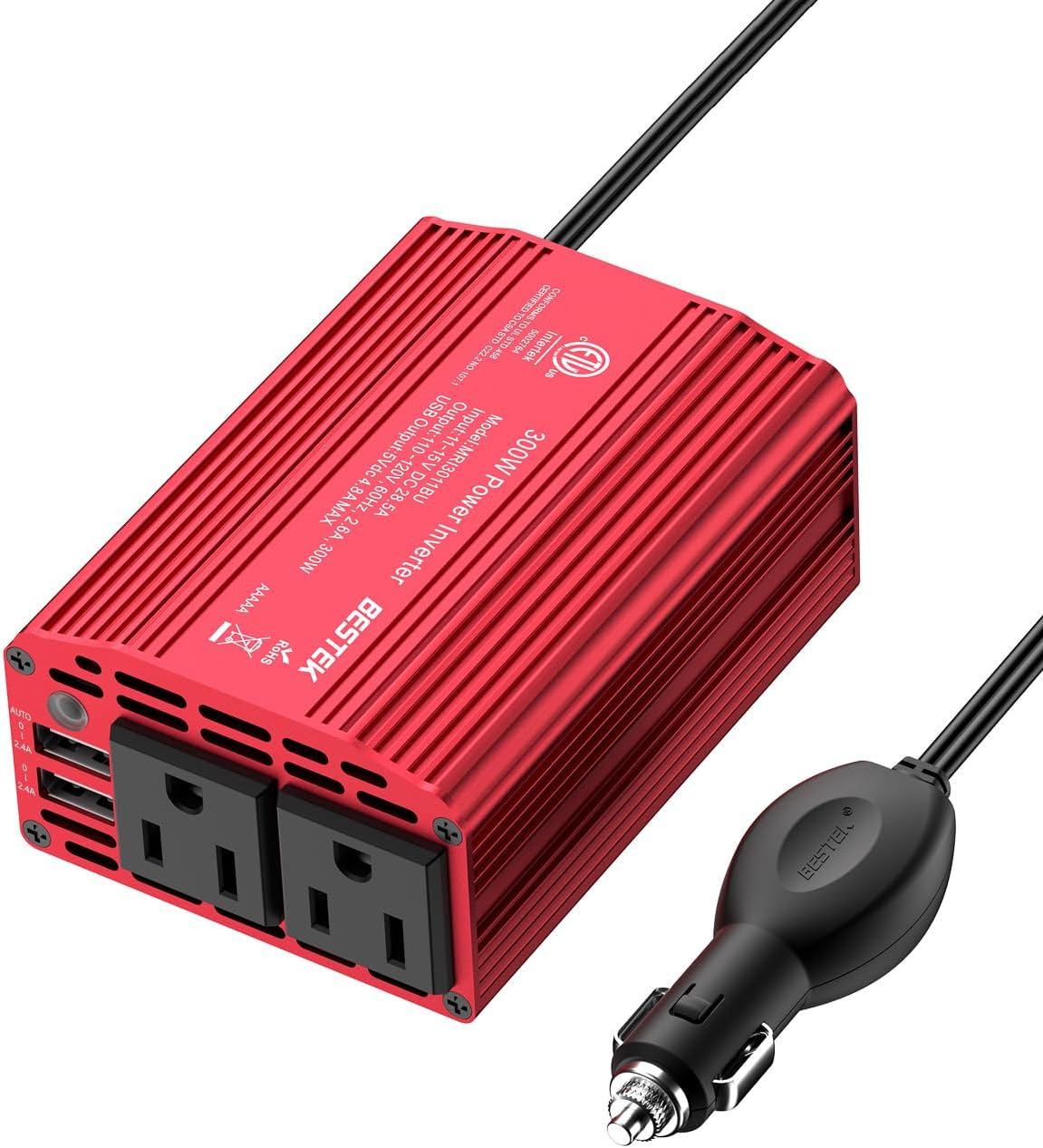 BESTEK Advantage: America's leading power inverter brand. Our inverter can convert 12v DC to 110v AC power to help you safely charge devices in the car. It provides 300 watts continuous DC to AC power and 700 Watts instantaneous power, you can keep your smart devices, game consoles, electronic instruments, and more powered on while being on the road or out camping.