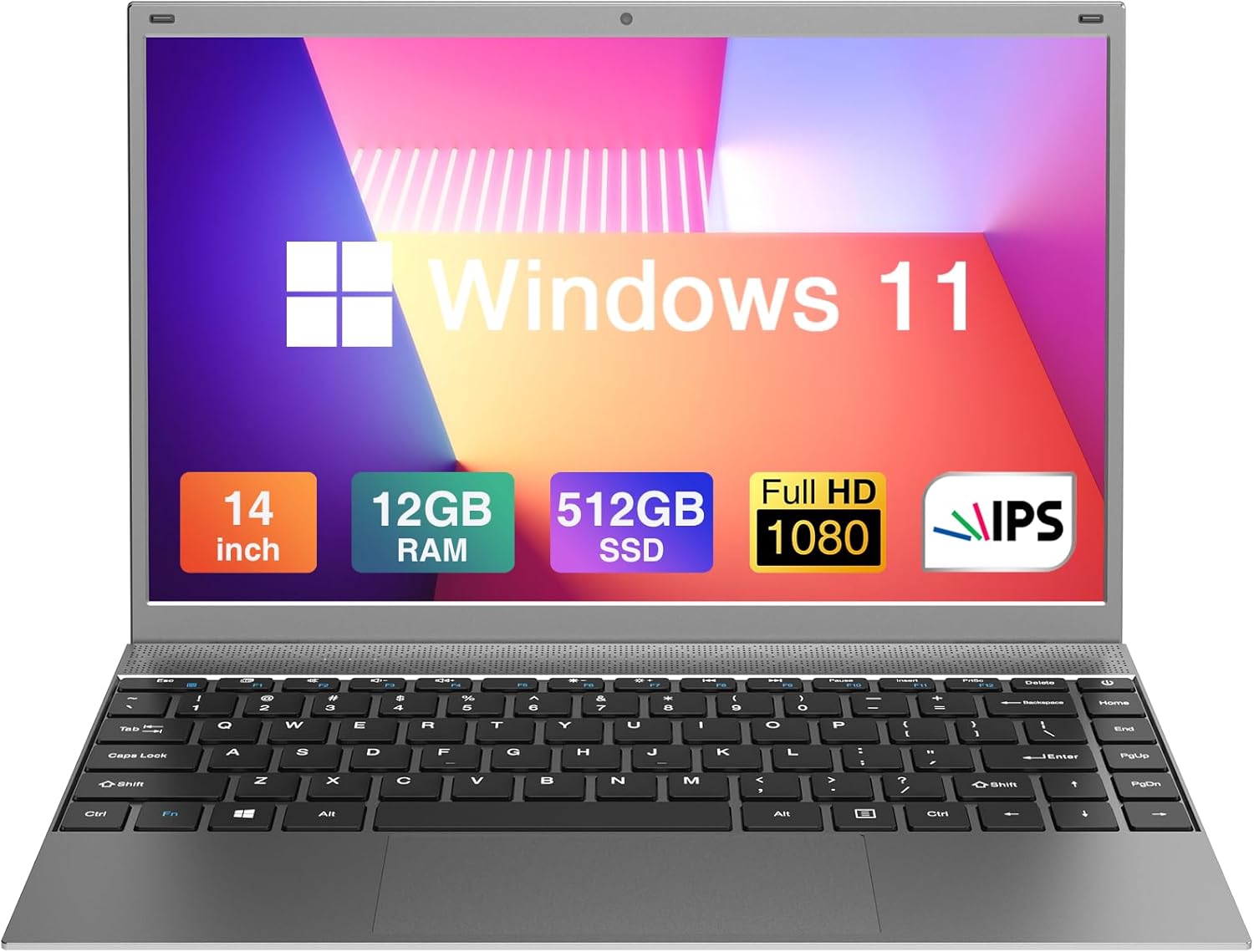 Ordenador portátil Tulasi, portátil con 12 GB de RAM, SSD de 512 GB, procesador Intel Quad-Cores N4120, pantalla IPS Full HD de 14 pulgadas y 1080P, portátil con Windows 11 Pro, compatible con WiFi 2.4G/5G, BT 4.2, ampliable hasta 1 TB