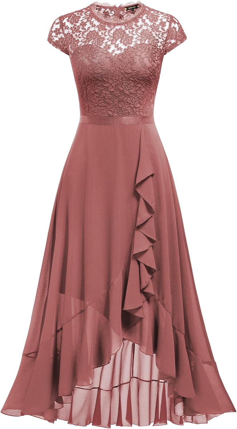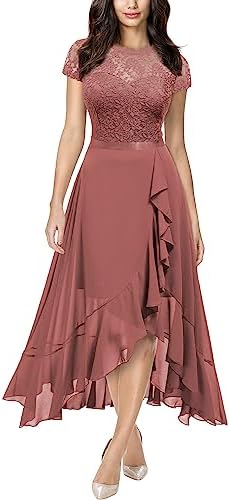 Miusol Women's Retro Lace Contrast Chiffon Ruffle Evening Maxi Dress
