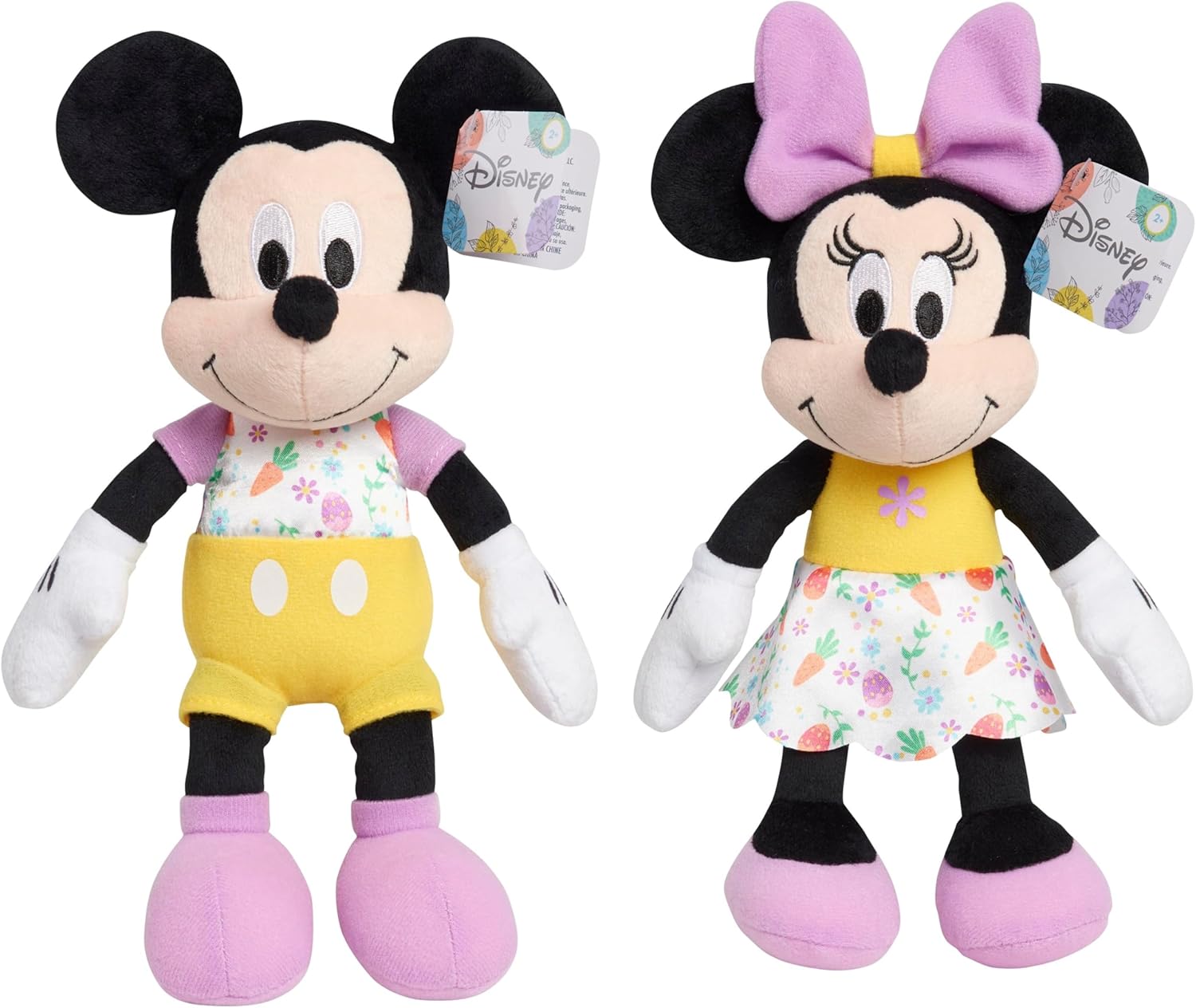 Just Play Disney Easter Mickey Mouse and Minnie Mouse Small Plushie Stuffed Animal, 2-Pieces, Easter Basket Stuffers, Kids Toys for Ages 2 Up