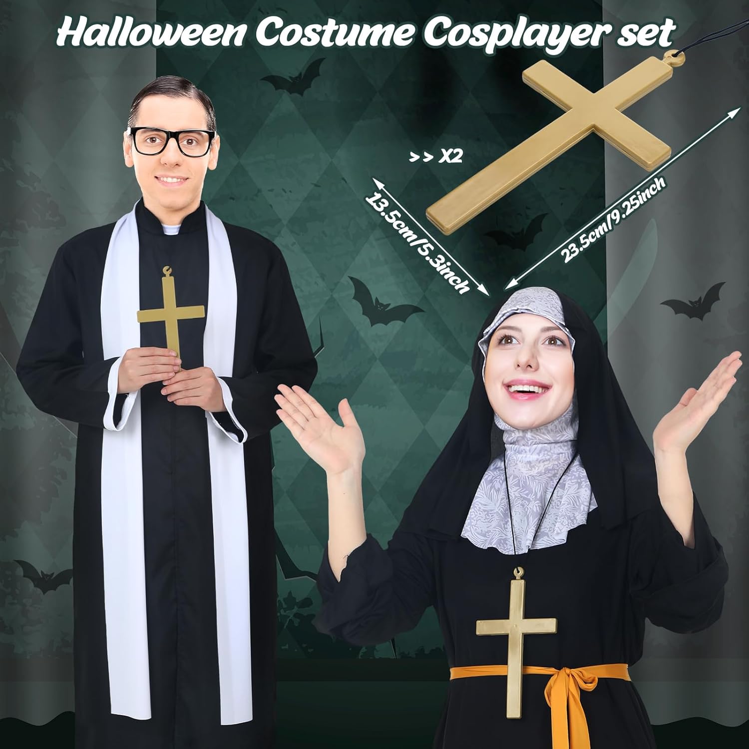Shinymoon Halloween Priest Costume Nun Costume with Robe Cross Accessories Crucifix Necklace Prop for Women Men Adult, Black (Large)