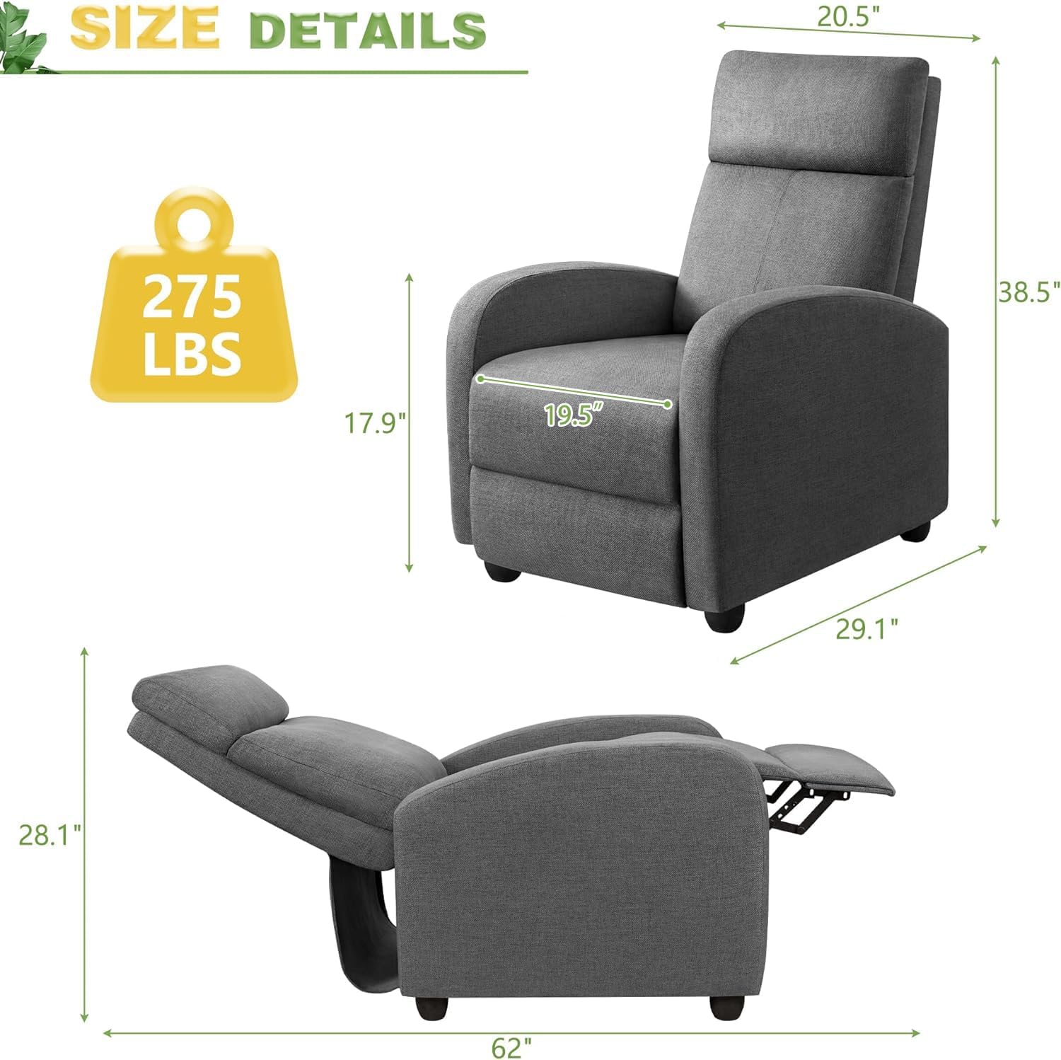 Ideal Single Seat: This recliner is made of good quality skin-friendly fabric and soft comfortable sponges. Resilient seat is ideal for long time sitting. Massage function, give you a full relaxation to enjoy.