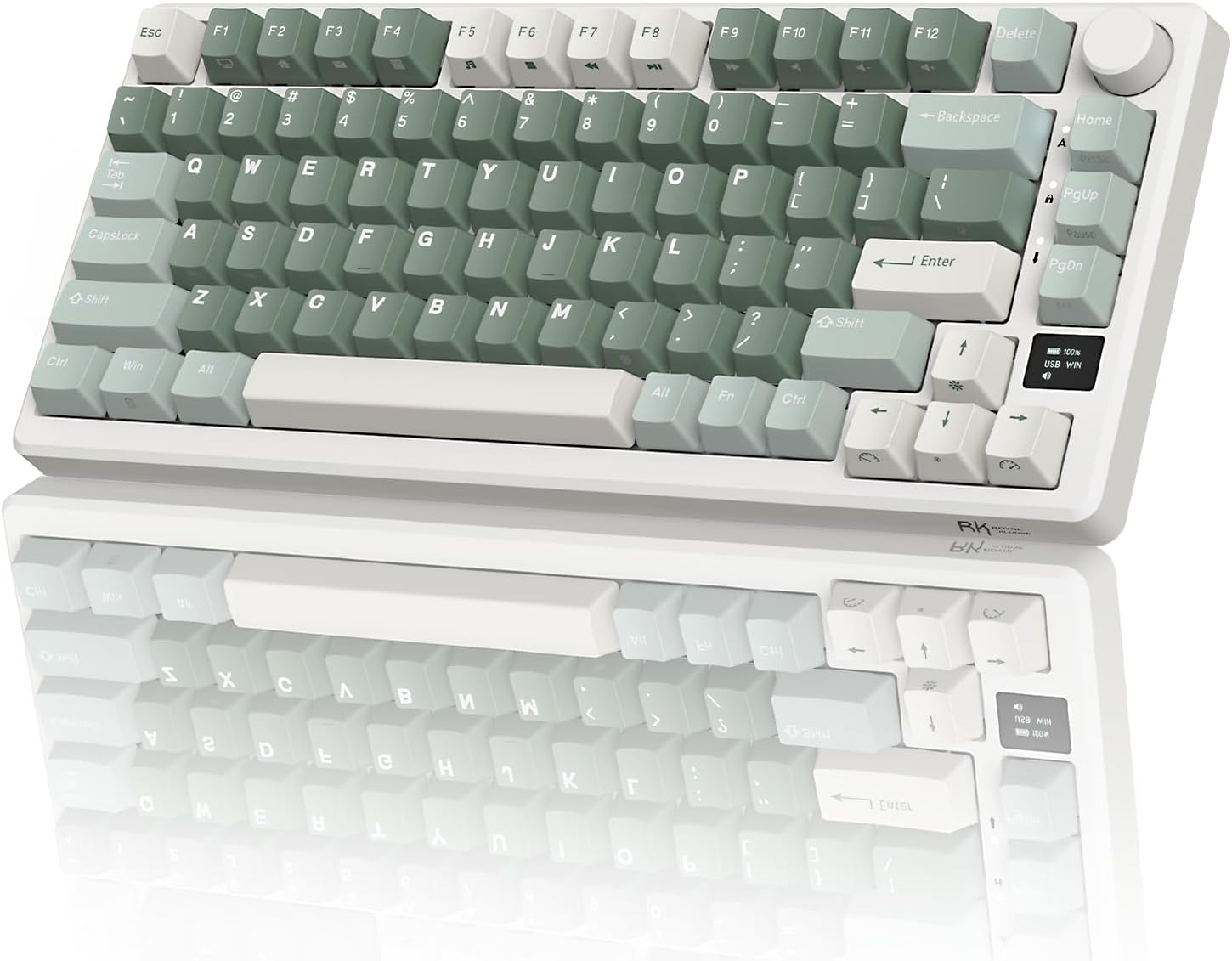 RK ROYAL KLUDGE M75 Wireless Mechanical Keyboard 2.4Ghz/BT5.1/USB-C Gaming Keyboard 75% Layout 81 Keys Gasket Mount with OLED Display & Knob RGB Backlight Hot-Swappable Pale Green Switch, Green