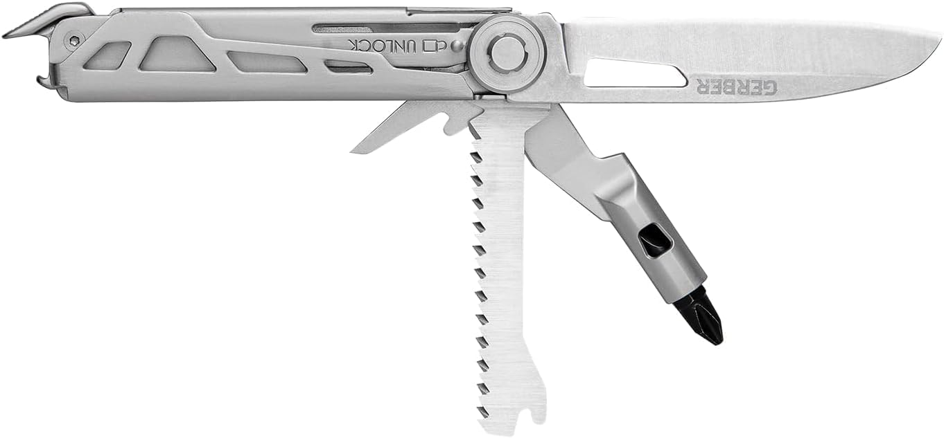 With the Gerber Gear Armbar Trade 8-in-1 Multi-tool, we packed maximum utility into a compact, work-friendly design. The idea is simple: always be prepared. The Armbar Trade is built on a stainless steel frame with a 2.5" plain edge blade, two-sided 1/4" bit driver, awl, saw, bottle opener, and prybar, with a pocket clip for easy access when moving between tasks or locations. The Armbar Trade multi-tool includes a sturdy frame lock to ensure safe operation and easy access to all onboard tools. Elevate your camping gear, emergency survival kit, hiking accessories, and job performance with this lightweight state-of-the-art multi-tool that can travel with you anywhere. Like all Gerber products, this convenient Gerber multi-tool is backed by the Gerber Guarantee, our limited lifetime warranty.