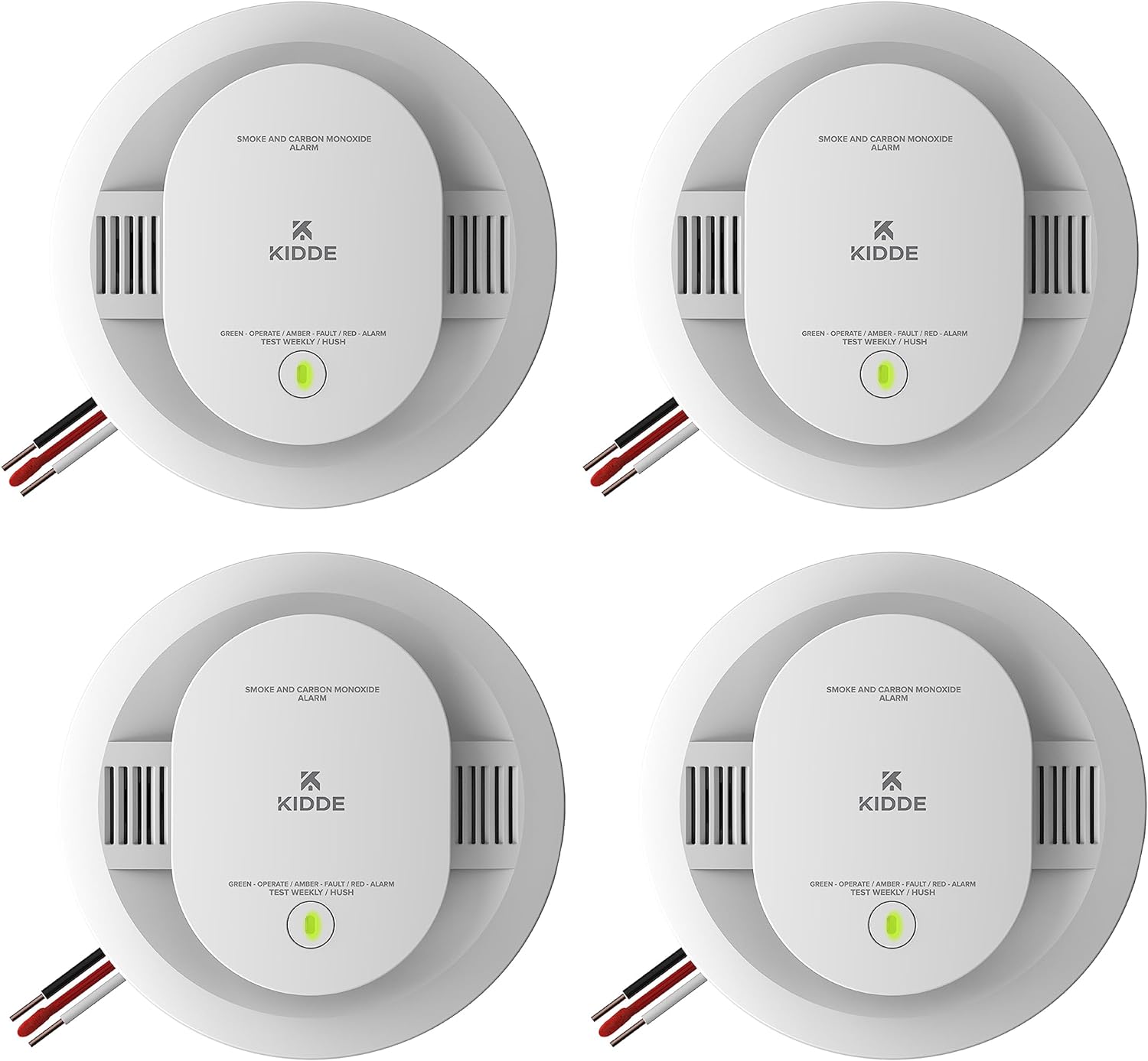 Kidde Hardwired Smoke & Carbon Monoxide Detector, AA Battery Backup, Voice Alerts, Interconnectable, LED Warning Light Indicators, 4 Pack