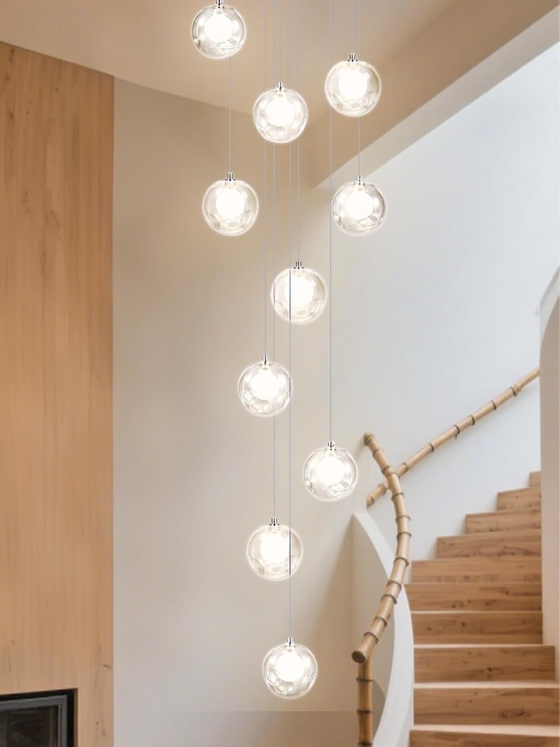 ★MODERN DECORATIVE STAIRCASE PENDANT LIGHT: The modern design of long hanging wires and hanging spherical glass lampshade adds a touch of elegance to any space, the light it emits is charming and soothing, a standout exquisite piece in any setting, is stunning And admire the gorgeous lighting.