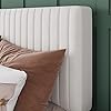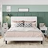 Allewie Full Bed Frame, Velvet Upholstered Platform Bed with Adjustable Vertical Channel Tufted Headboard, Mattress Foundation with Strong Wooden Slats, Box Spring Optional, Easy Assembly, White