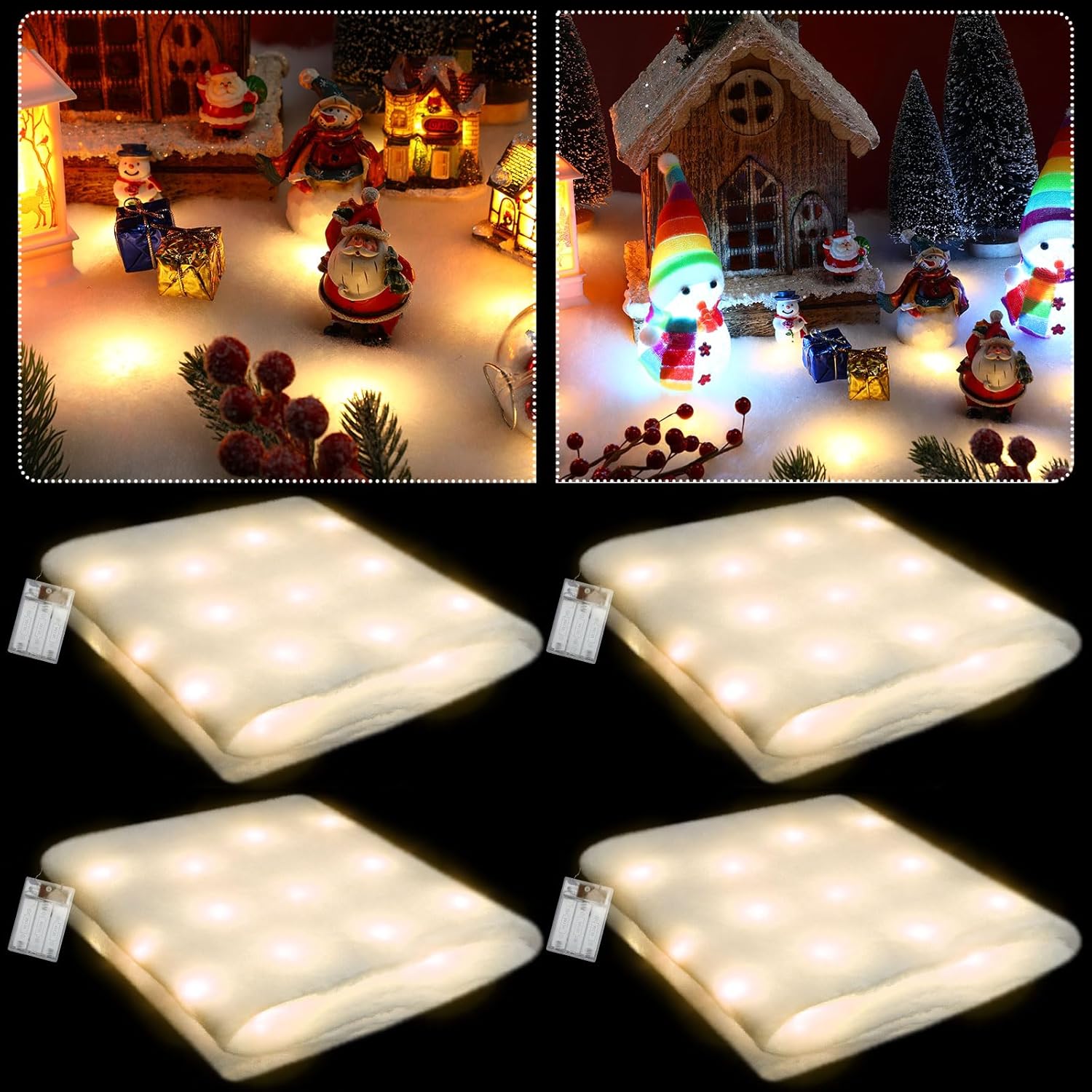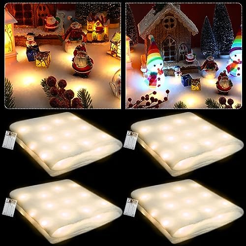 4 Pcs Pre Lit Christmas Snow Blanket with LED Lights Holiday Lighted Table Runner Christmas Village Accessories LED Fake Snow Decoration for Village Display, 59 x 16 (Warm Light)