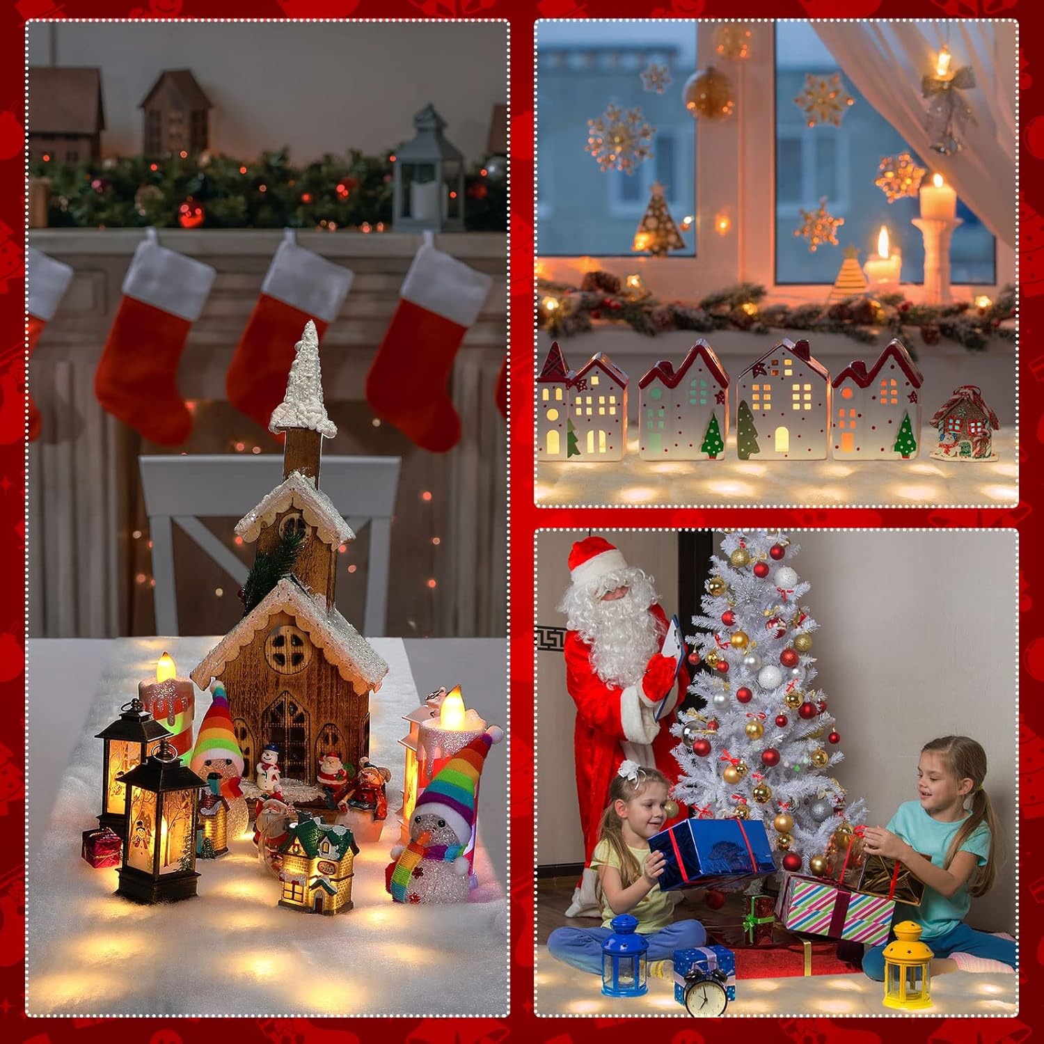 Product Includes: there are 4 pieces of Christmas village snow blankets with lights, about 59 x 16 inches/ 150 x 40 cm, each blanket has 1 piece 5 meters 50 LED bulbs with battery case, needing 3 AA batteries (not included); The quantity is sufficient for you to decorate, replace or share; The battery box can be opened easily by gently pushing upwards