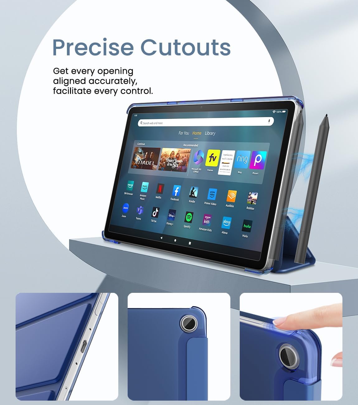 Auto Wake/Sleep: Despierta o pone en modo de suspensión automáticamente la tableta Fire 11 max cuando se abre y cierra la tapa. Fácil acceso a todas las funciones y controles. Imán fuerte para cerrar convenientemente la cubierta y evitar la apertura accidental.