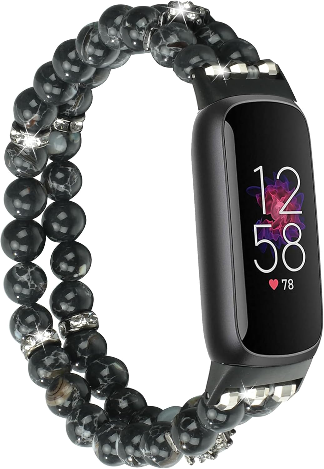 Wongeto Compatible with Fitbit Luxe Bands,Fashion Handmade Elastic Stretch Pearl Bracelet Women Replacement Strap for Fitbit Luxe accssorises