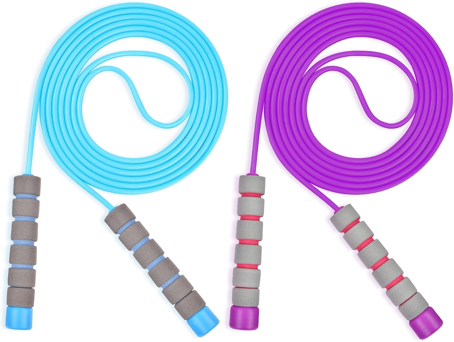 🍇Healthy and Environmentally Friendly Material: The 2-pack jumping rope handles are constructed of ecologically friendly polyethylene and soft sponge, are ergonomically built, and are non-slip. The rope is constructed of wear-resistant PVC cord, contains no dangerous components, does not cause allergies, and will not injure young children.