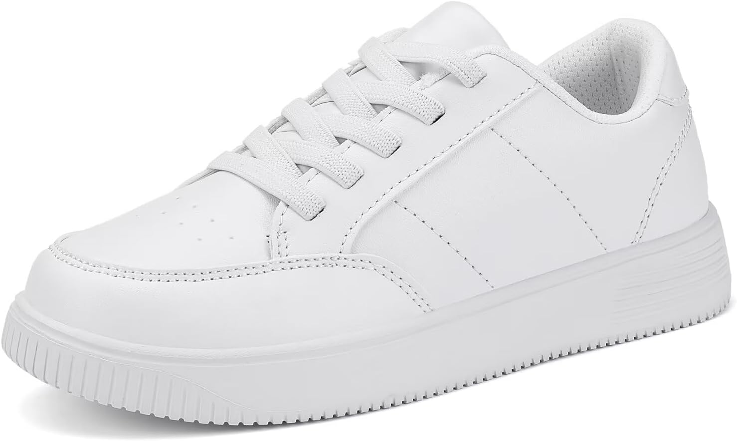 DSWED Unisex-Child Leather Lightweight Breathable Knit Athletic Running Sneakers for Kids Shoes for Boys Girls