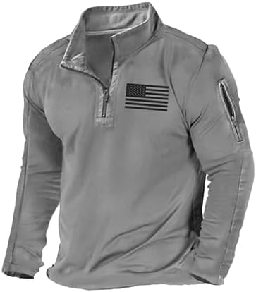 H HYFOL Men's USA Flag Graphic Pocket Pullover American Patriotic 1/4 Zip Stand Collar Long Sleeve Sweatshirts