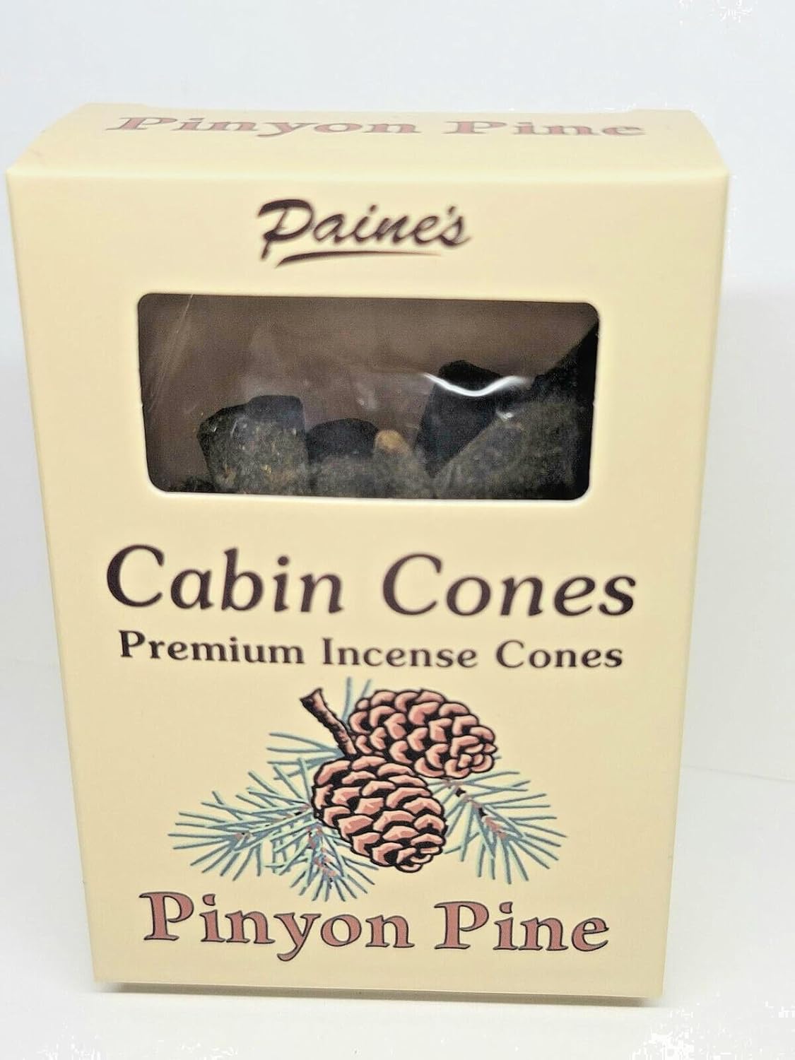 Box of 25 pieces PINYON PINE CABIN CONES Premium Incense Cones made in Maine, USA by Paine Products. These fit in our log Cabin Incense Burners.