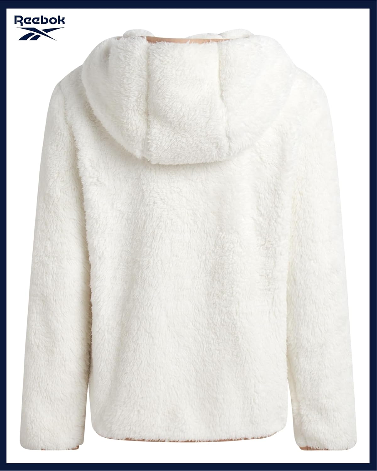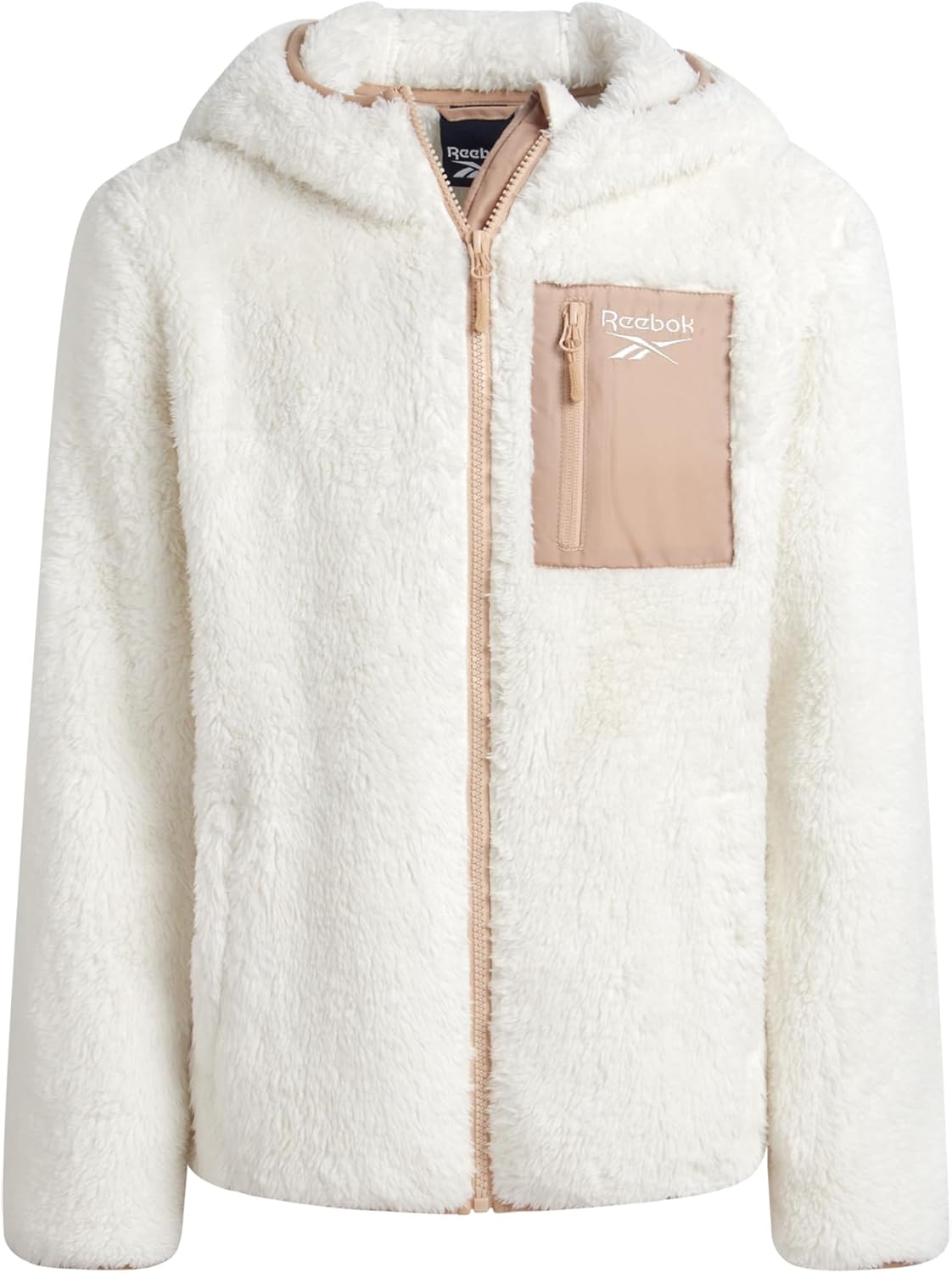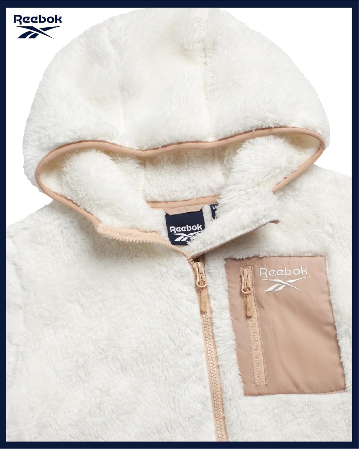 Reebok Girls Fleece Jacket - Full Zip Soft Sherpa Faux Fur Coat Hooded Winter Jacket - Warm Teddy Coat for Girls