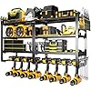 【Extra Large 8 Drill Holders and 4-Layer Capacity】- This power tool organizer wall mount is designed to store 8 cordless drills on the bottom tier, with three additional layers for storing heavy tools, small accessories, and added slots for hammers, pliers, and screwdrivers. It's the perfect solution for organizing your cordless tool organizer needs.
