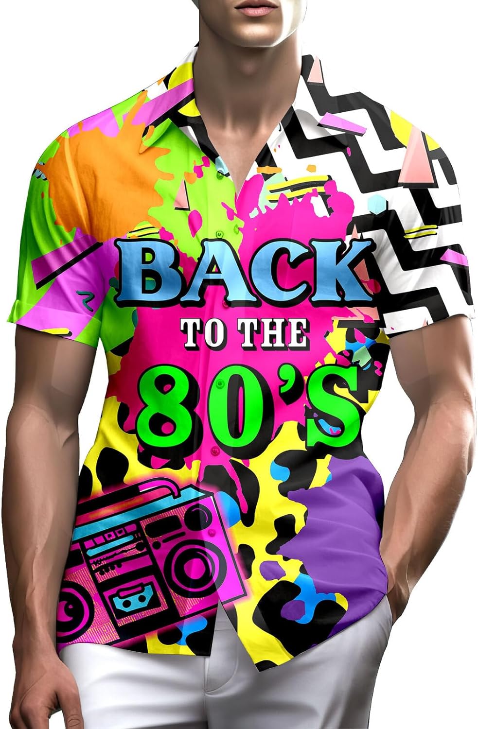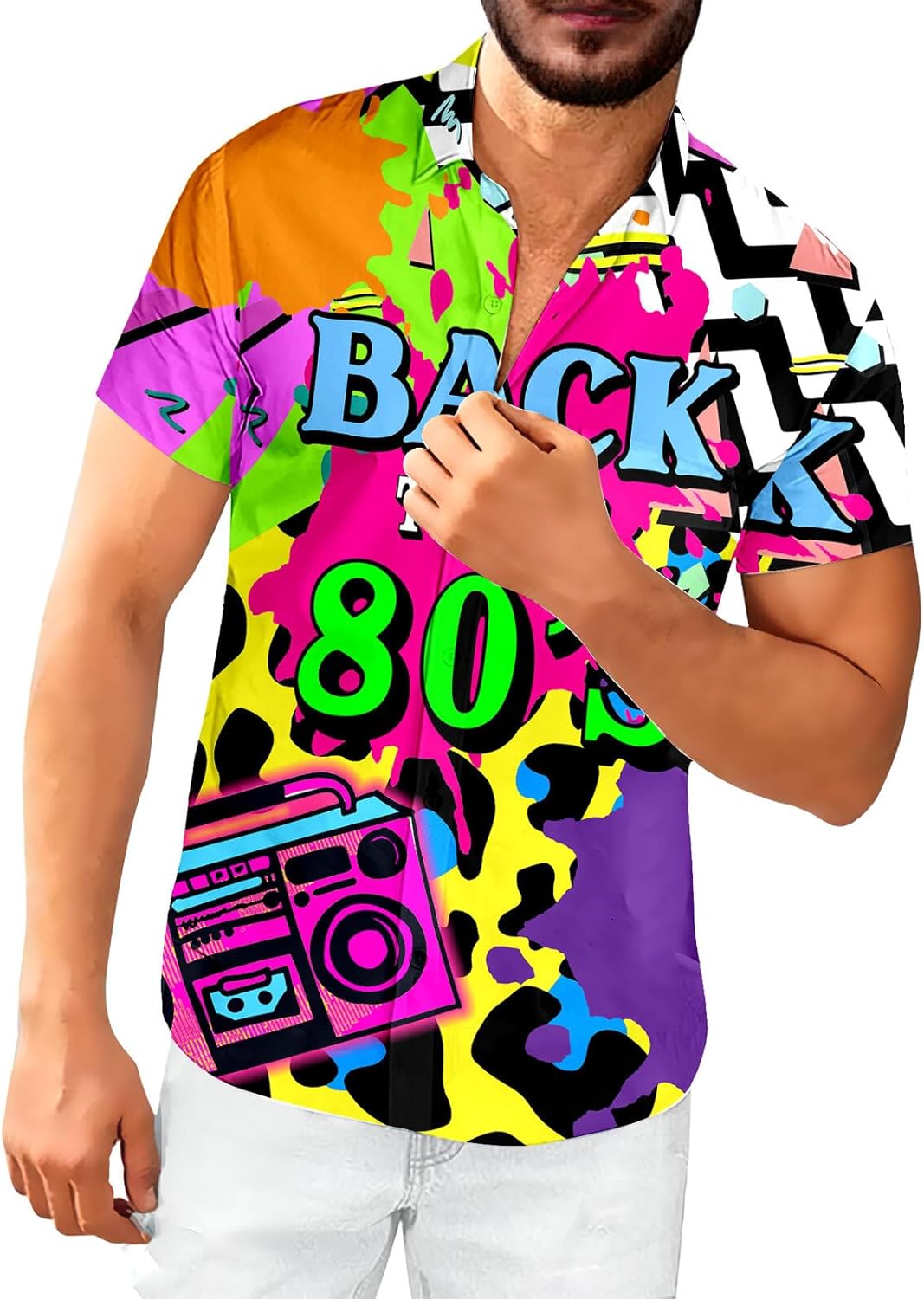 80s Shirts for Men Funny Vintage 90s Outfit for Men Hawaiian Shirts Button-Up 90s Party Beach Shirt Mens 80s Clothing