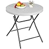 Smartxchoices 32" Round Folding Table Plastic Card Table Circle Dining Table Heavy Duty Portable w/Handle for Picnic Party Camping Dining Wedding Event Indoor Outdoor Lightweight White