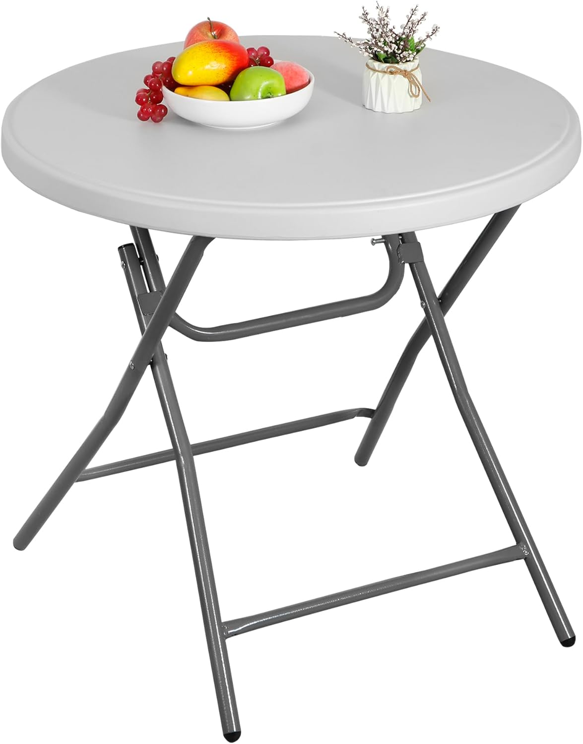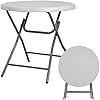 Let get it today and start our convenient and happy daily life!! This circle camping table is built with a heavy-duty white plastic top and powder-coated steel tube frame , waterproof, no rust, corrosion resistant, easy clean, rugged enough for all your indoor or outdoor needs. Features: *The table has a heavy-duty white plastic top and powder-coated steel tube frame for stability. - The metal legs feature locking mechanisms to keep the round table folded up. - This picnic table with a carrying handle built-in for ease of transport - Very easy to clean - The sturdy table is built to last and is weather-resistant. - No Assembly required. Easy to transport and store. - This table is perfect for both indoor & outdoor use, such as parties, banquets, weddings, camping, garden, dining, buffet, or as a work table, etc. - Our lightweight camping table can hold up to 245lbs. Multi-group triangle structure provides excellent stability. Specifications: Color: White Materials: HDPE Tabletop + Steel Legs Overall Dimensions: 32" x 32" x 29"(L x W x H) Net weight: 16lbs Max. Load Capacity: 245lbs Package Includes: Round Folding table X 1