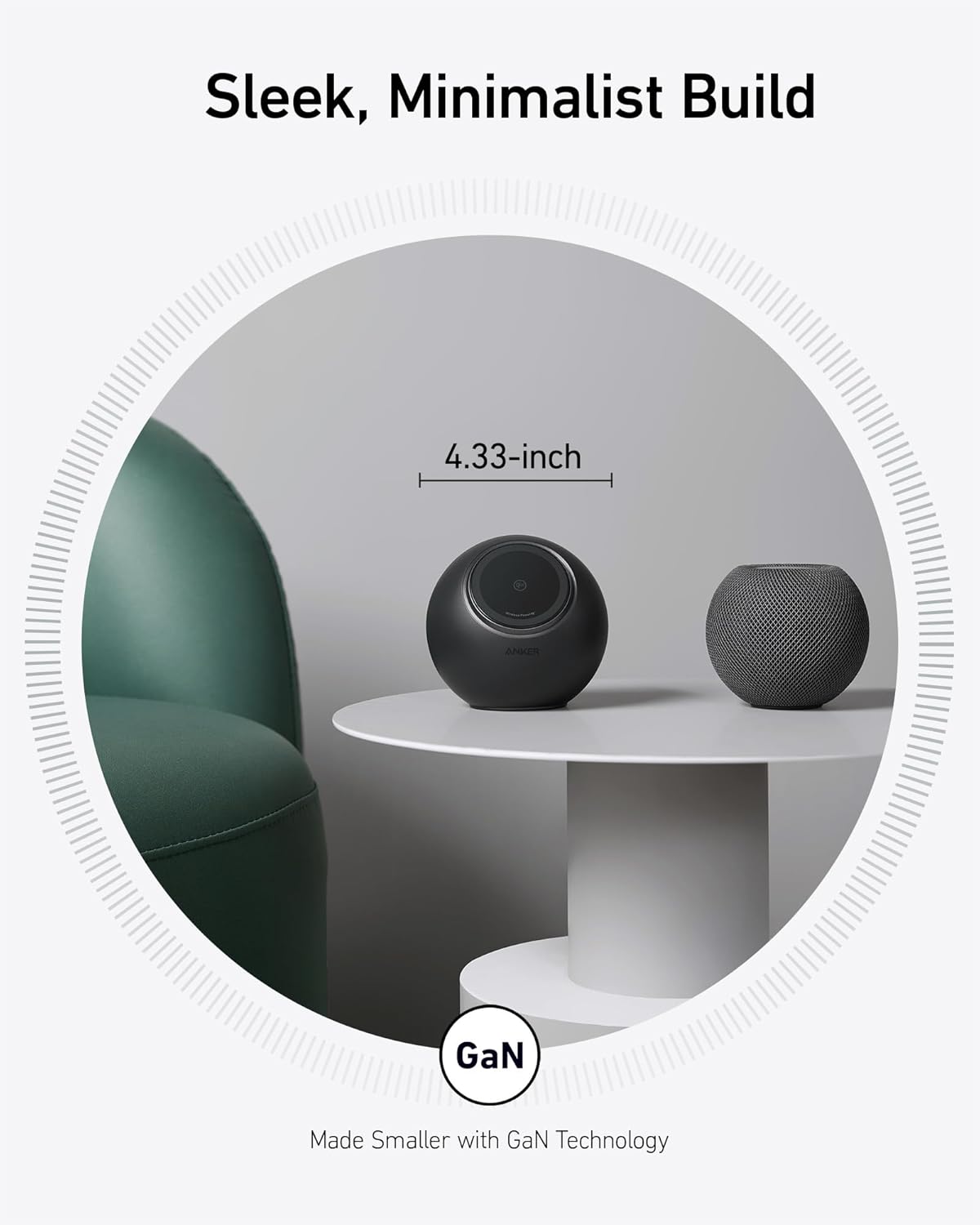 Compact and Clutter-Free: Enjoy a streamlined setup with concealed rear outlets, ensuring a clean desktop and saving space with a size comparable to a HomePod Mini.
