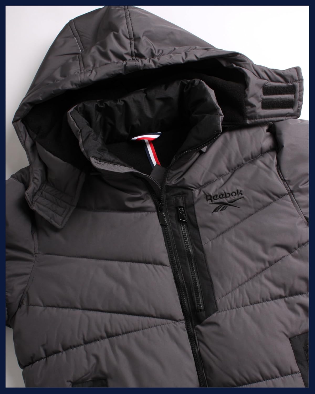 Reebok Mens Winter Jacket - Thick Heavyweight Ski Winter Coat - Warm Insulated Quilted Hooded Puffer Coat for Men