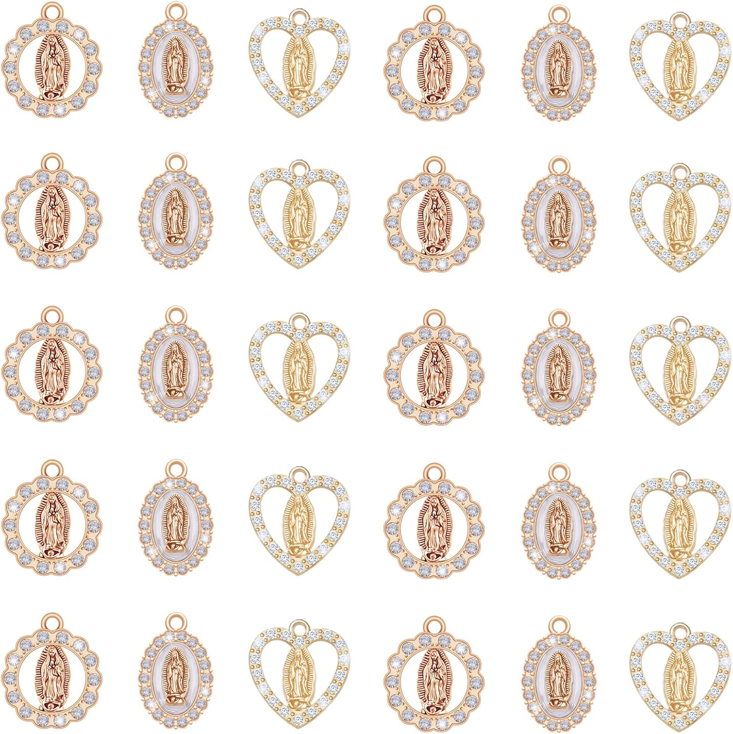36Pcs Virgin Mary Charm Rosary Centre Rhinestones Virgen De Guadalupe Charms Alloy Enamel Pendant for Diy Mexican Bracelet Necklace Earrings Jewelry Making