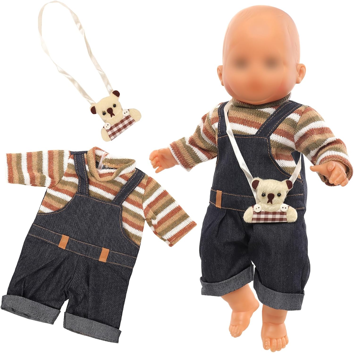 Miunana 13-16 Inch Baby Doll Dress with Bear Backpack Fit for 35-45 CM Doll One-Piece Dress Bear Jumpsuit