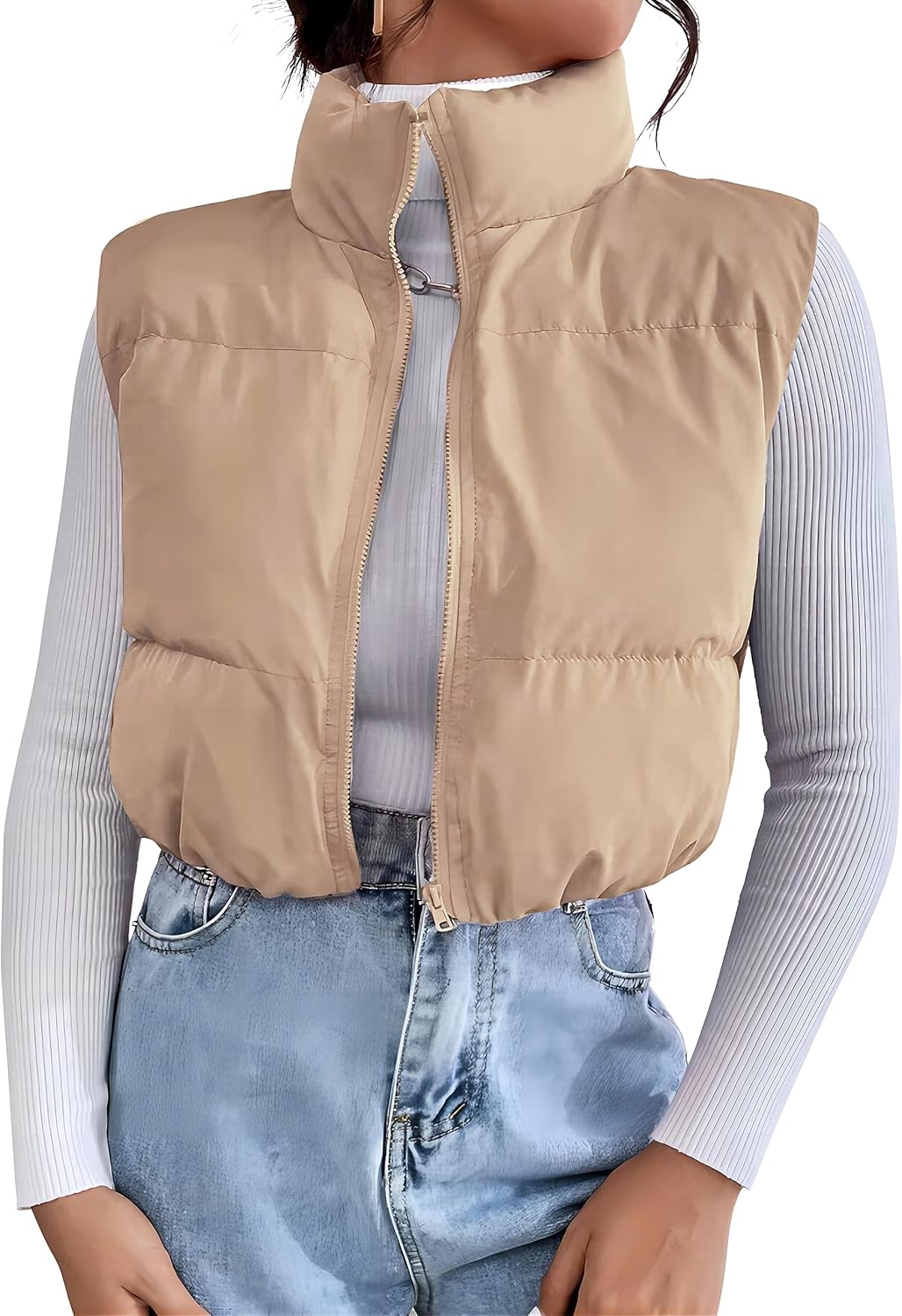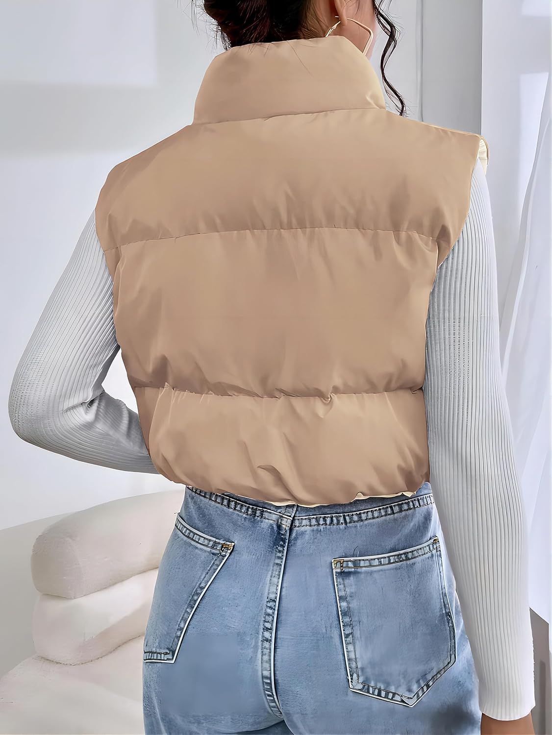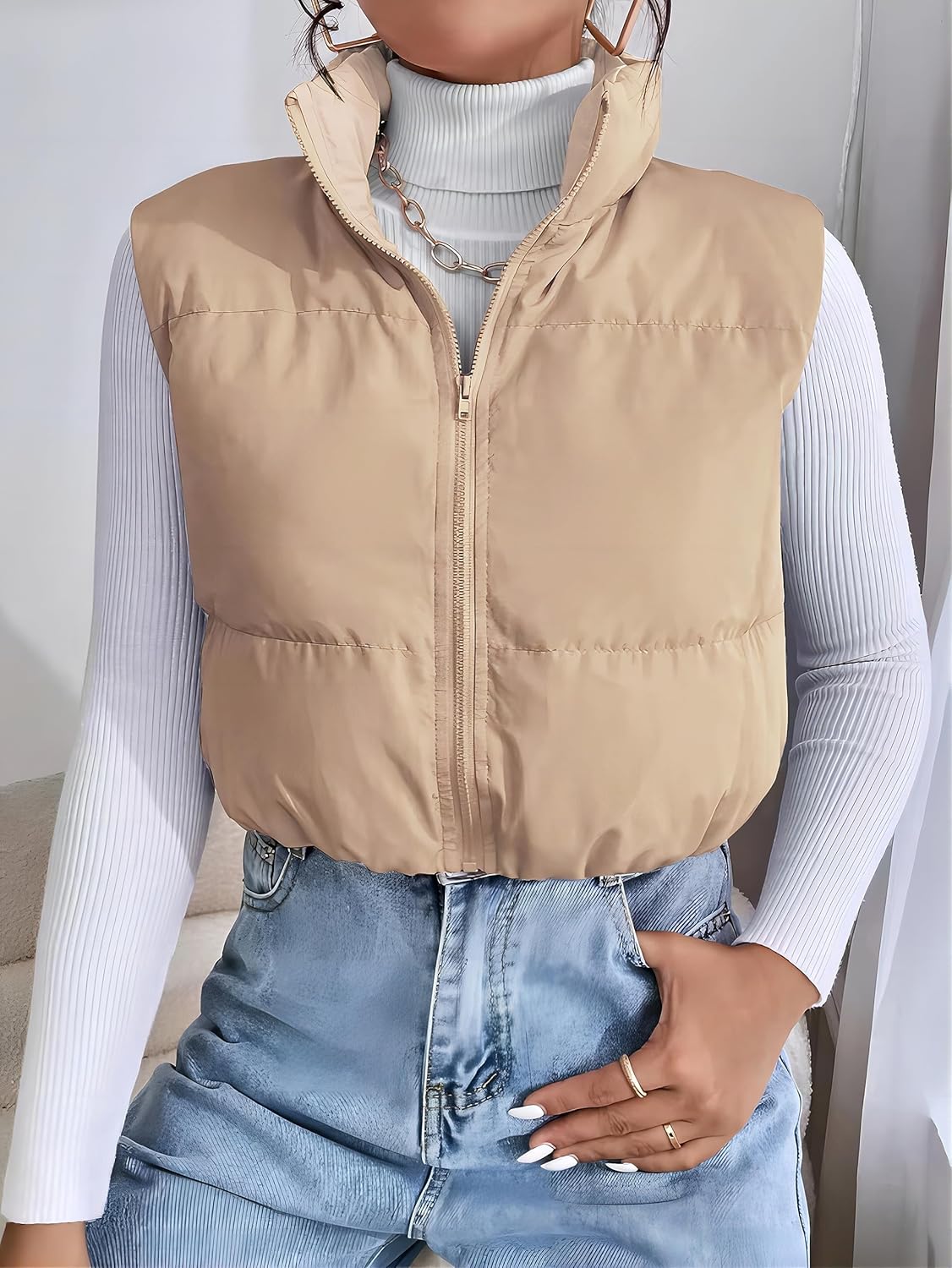 Chaleco corto de invierno Dr.Cyril para mujer, chaleco acolchado, sin mangas, sin mangas, con cremallera, chaqueta acolchada, cuello alto, abrigo ligero
