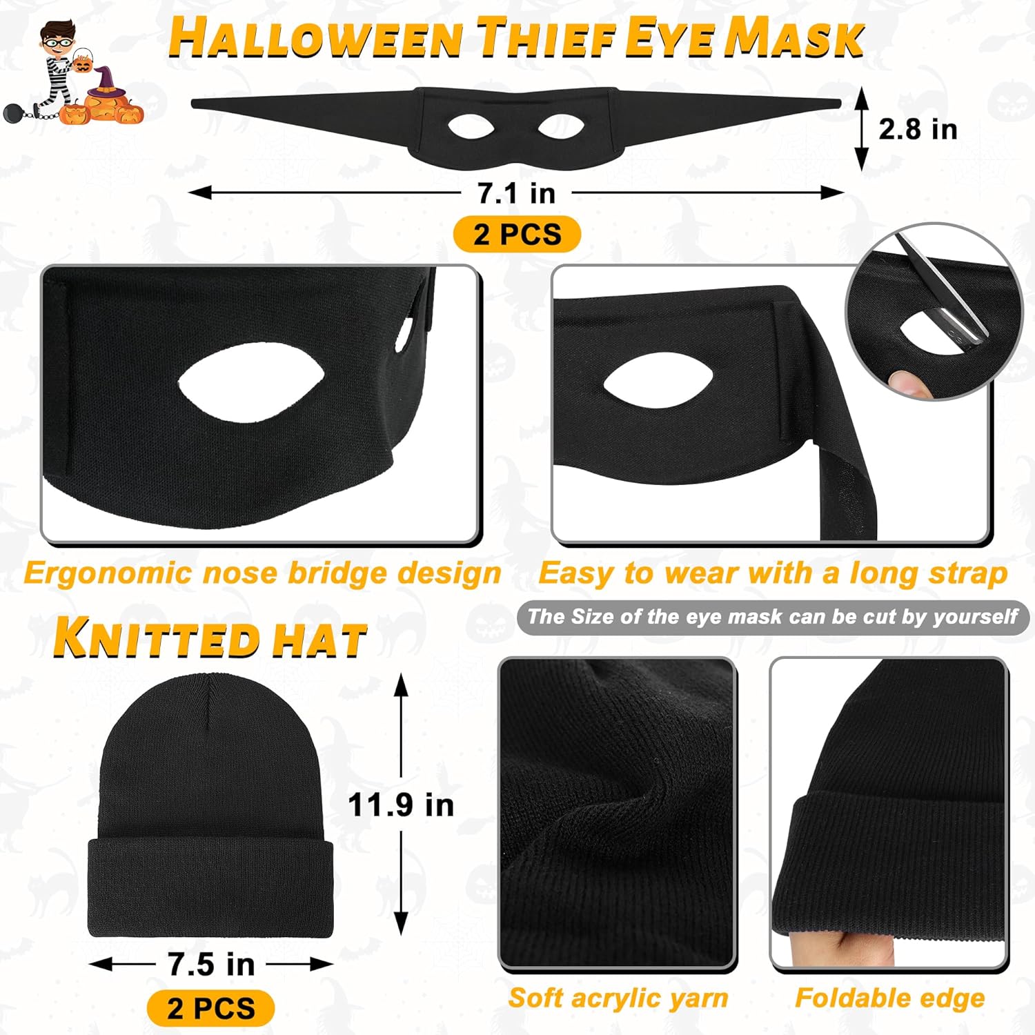QZYL 12 PCS Robber Costume, Unisex Thief Cosplay Set T-Shirt Beanie Cap Gloves Eye Masks Money Bags for Halloween Costume