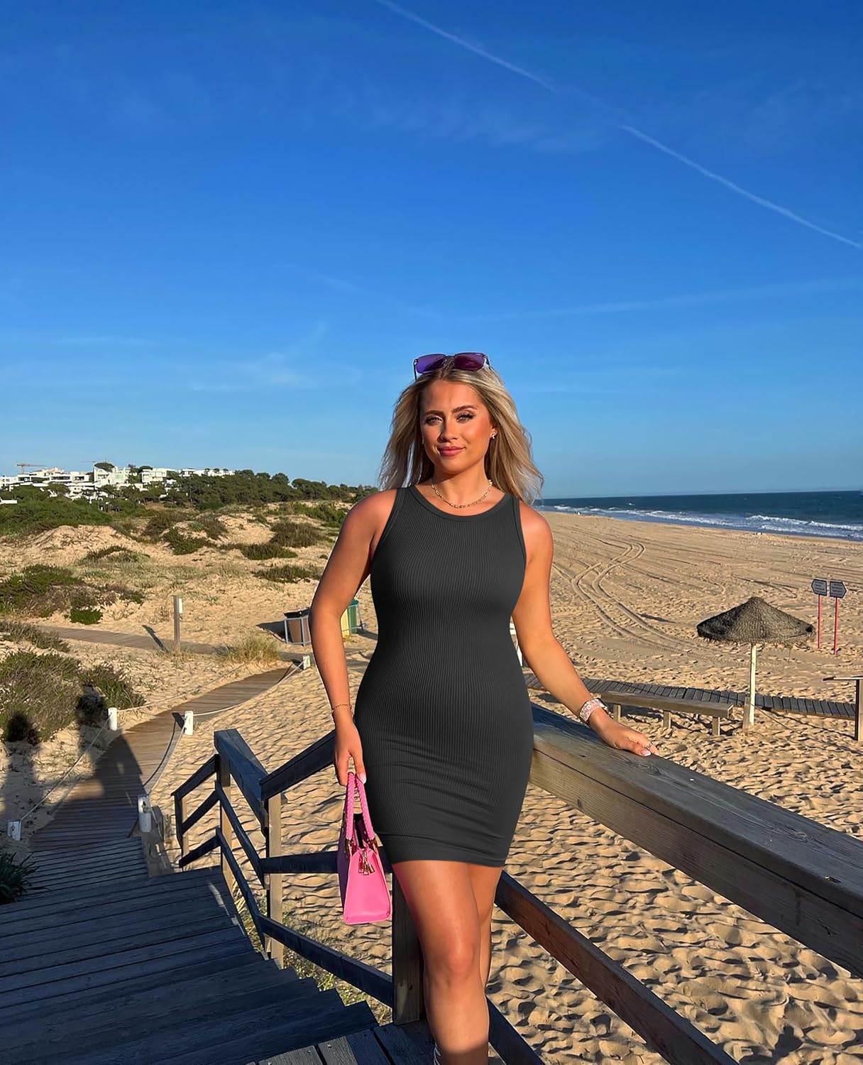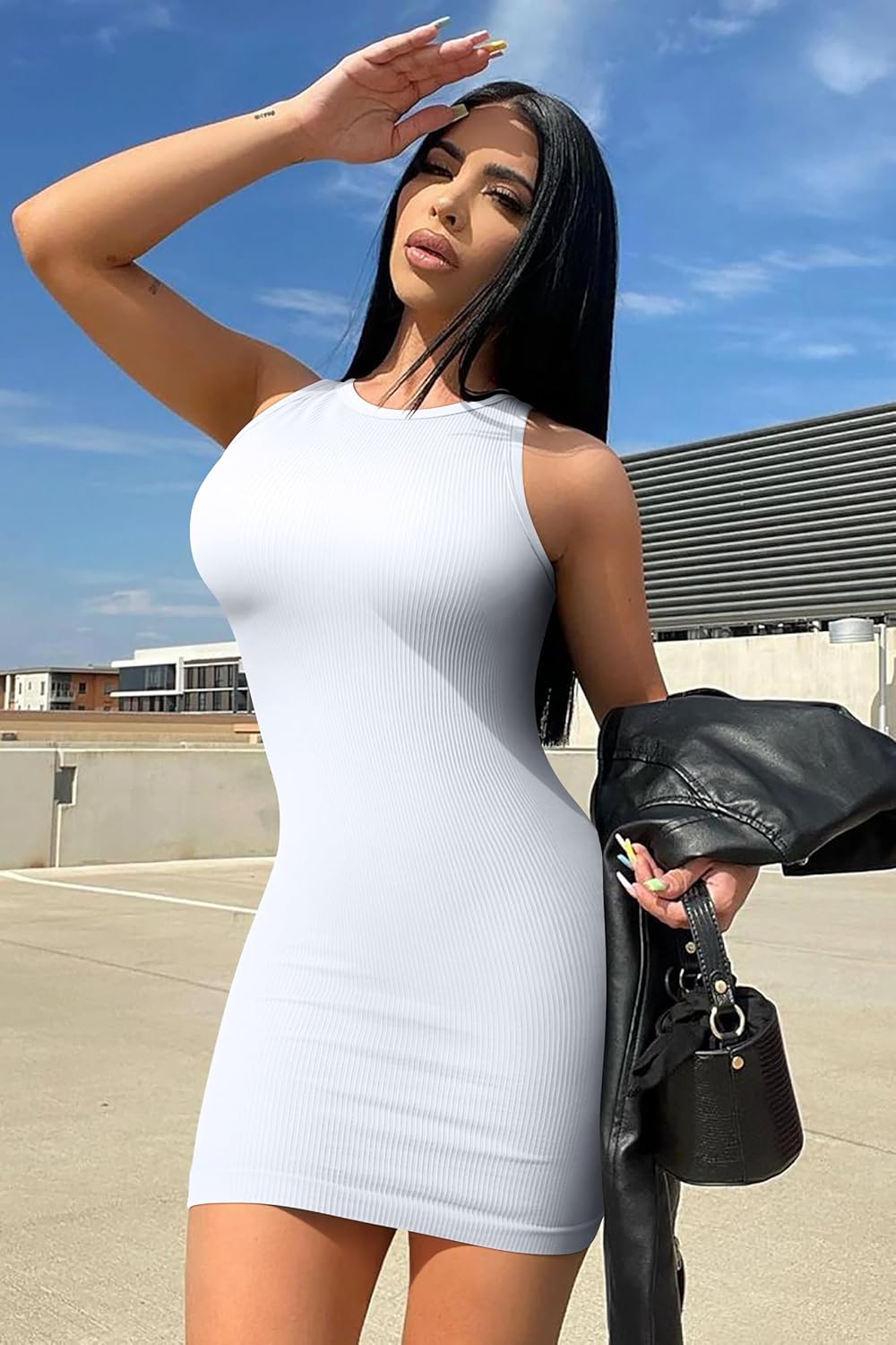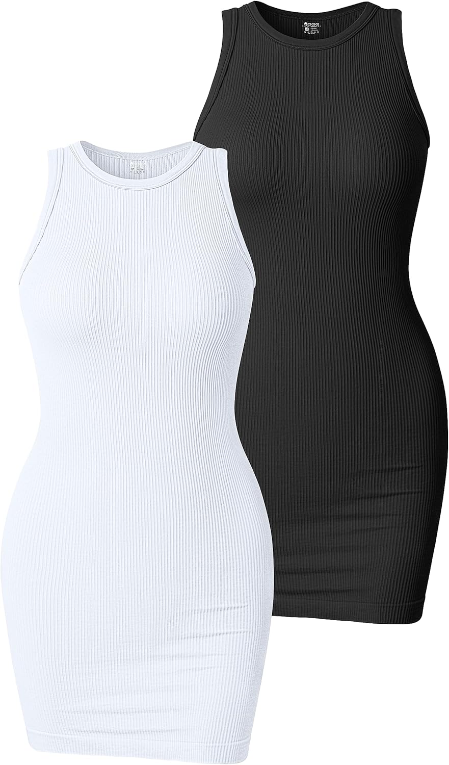 Vestido OQQ de 2 piezas para mujer, sexy, acanalado, sin mangas, cuello halter, sin mangas, minivestidos