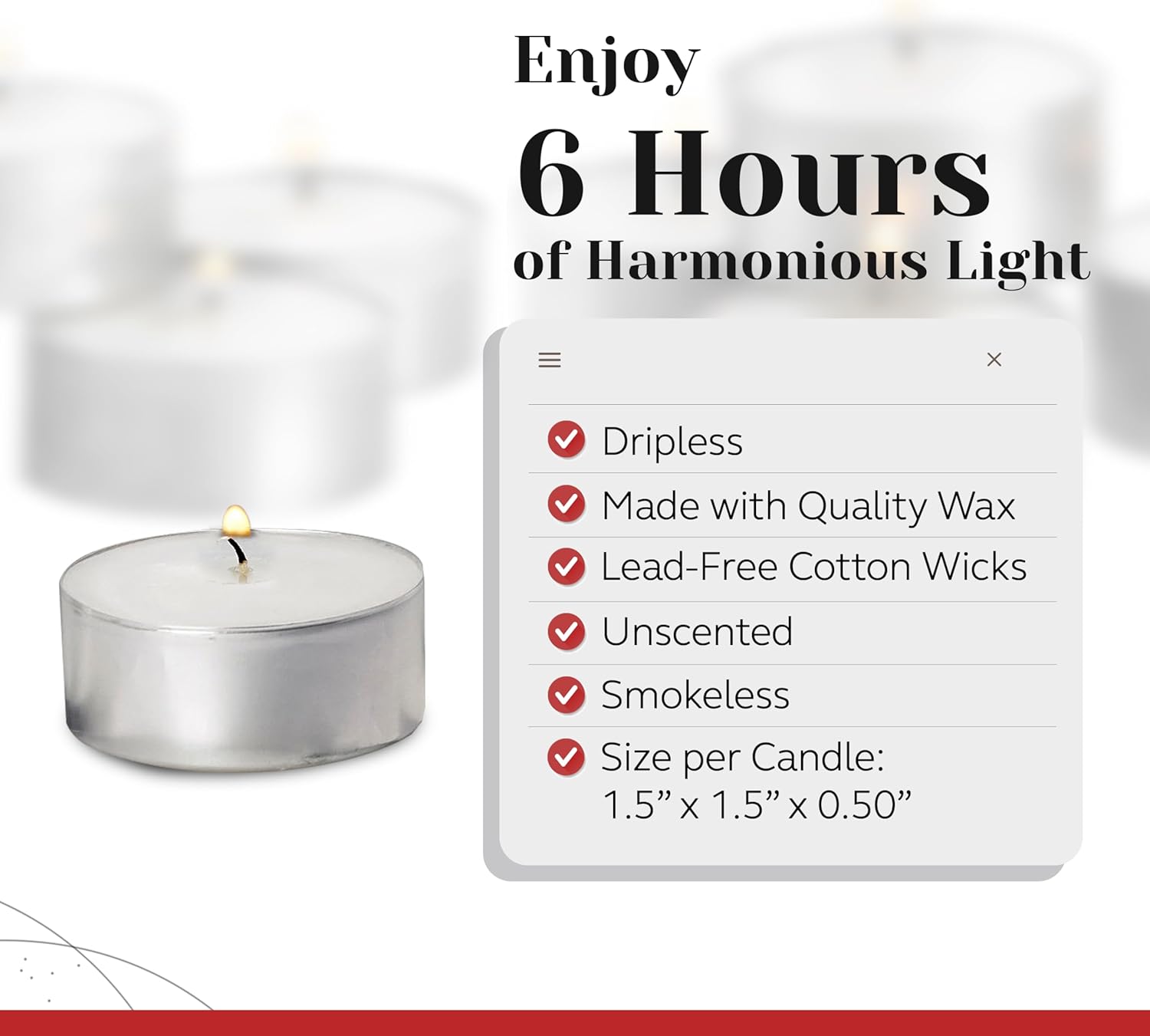 Clean Flames in Every Flicker: Soothe your senses with our soot-free, clean-burning, unscented votive candles and tealight candles bulk set — no more clogged nostrils or unsightly stains on fabrics!