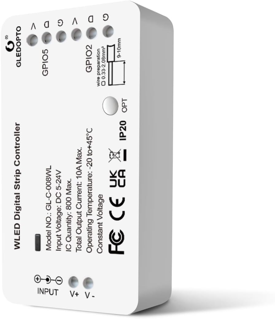 【Compatible with Various LED Strip Types】 The GLEDOPTO WLED LED Light Strip Controller can be used with a wide range of LED strips, including RGB, RGBW, WS2812B, WS2811, SK6812, TM1814, WS2813, and WS2815.