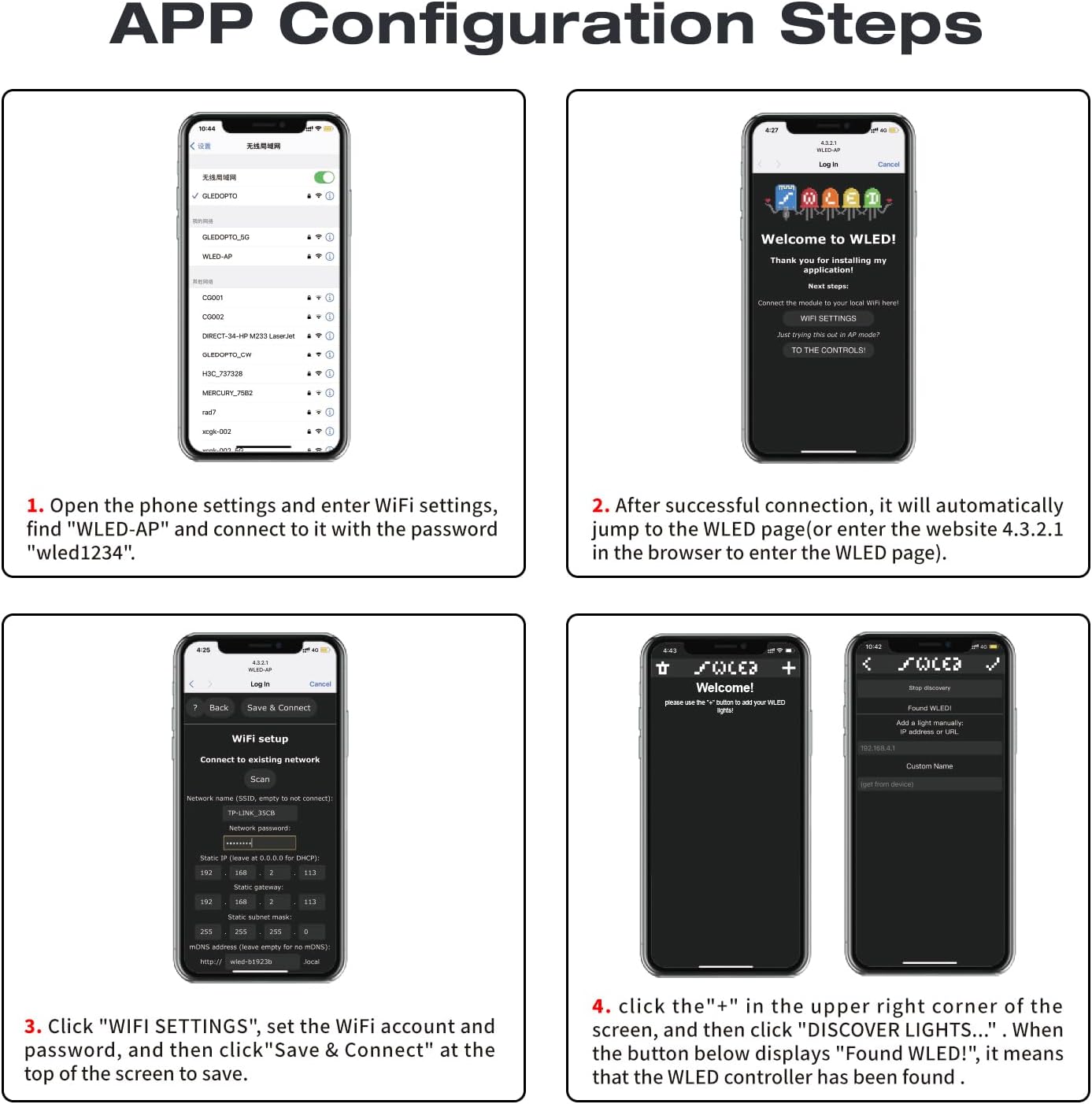 【WLED App Control】 With the WLED app, you can easily control your LED light strip from anywhere using your smartphone or tablet.