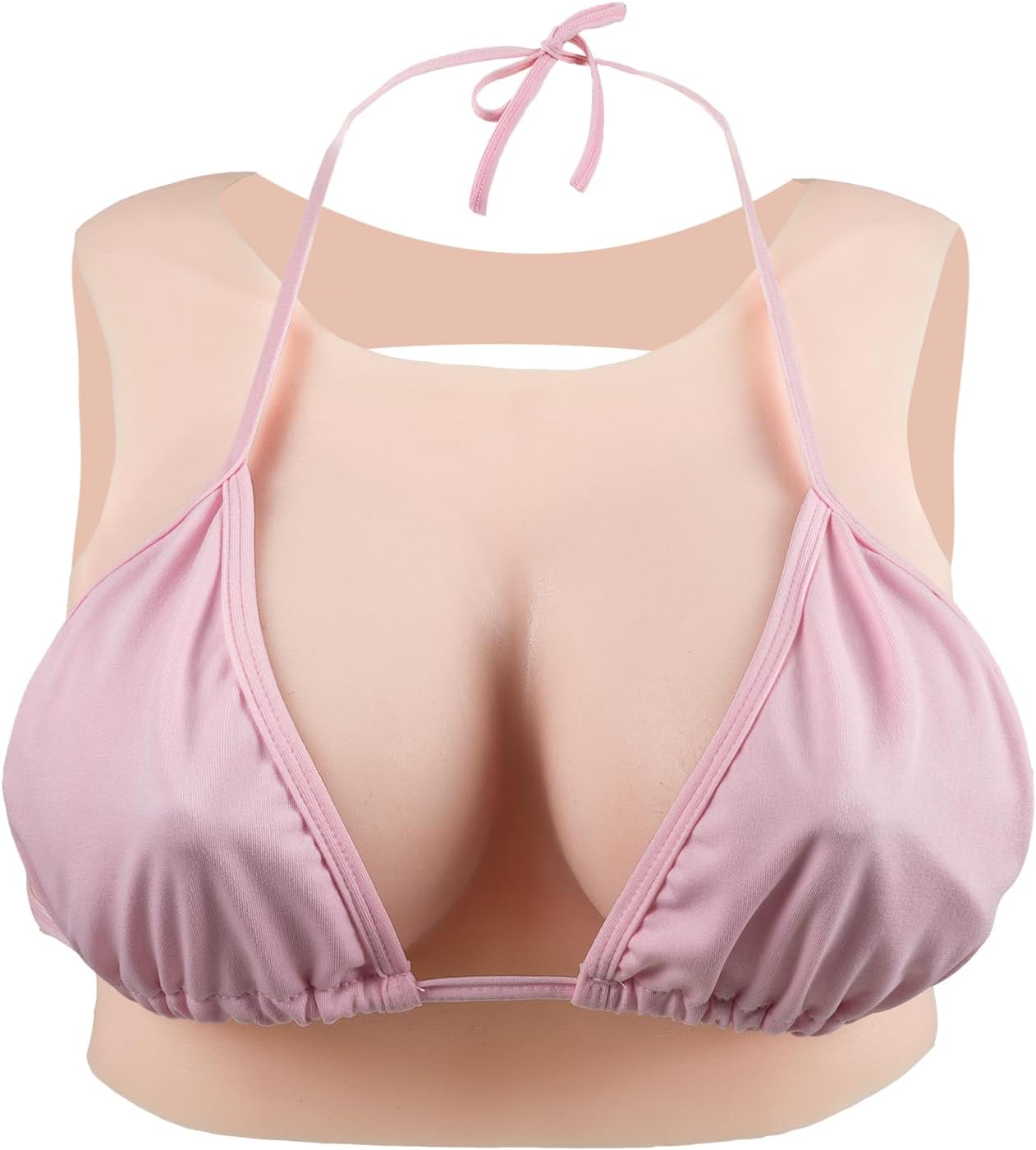 KUMIHO Silicone Breastplate Fake Boob Round Collar Hollow Back Realistic Fake Breast Form Drag Queen Transgender Crossdresser