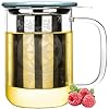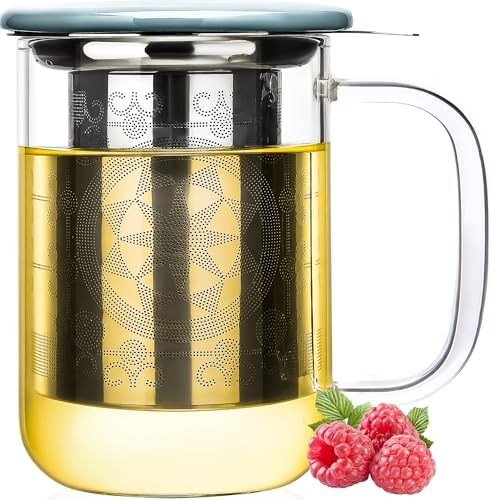 HIGH-QUALITY GLASS AND VERSATILE USE - The glass tea mug is made of non-porous borosilicate glass that doesn't retain flavors or odors. With a capacity of 18 oz/532 ml, it's ideal for a single serving and maintains ideal temperatures for hot or cold brews. Enjoy iced tea in summer or hot herbal tea in winter
