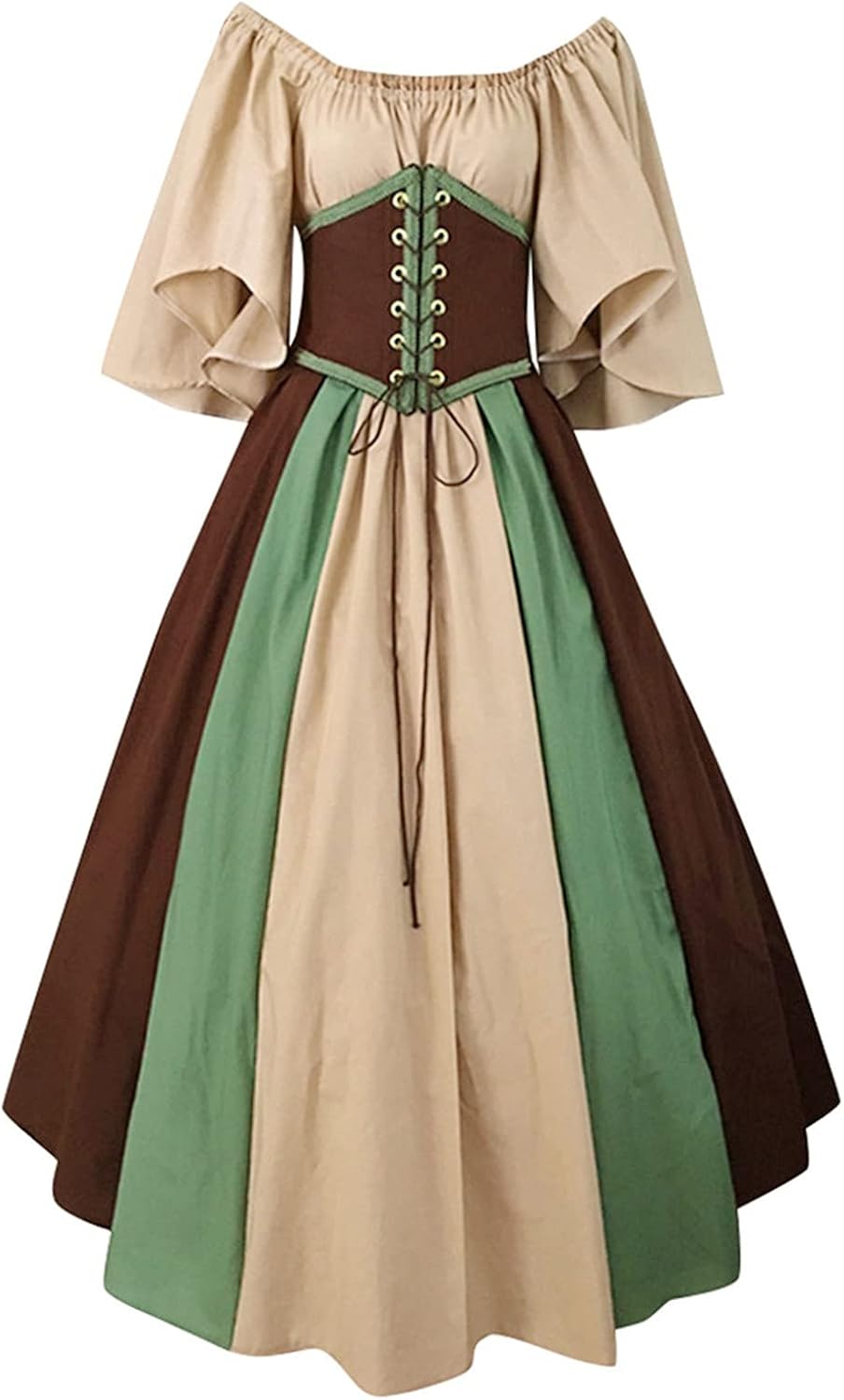 Disfraz de Halloween para mujer, talla grande, vestido medieval, disfraz renacentista victoriano irlandés sobrevestido vestido de bruja gótica