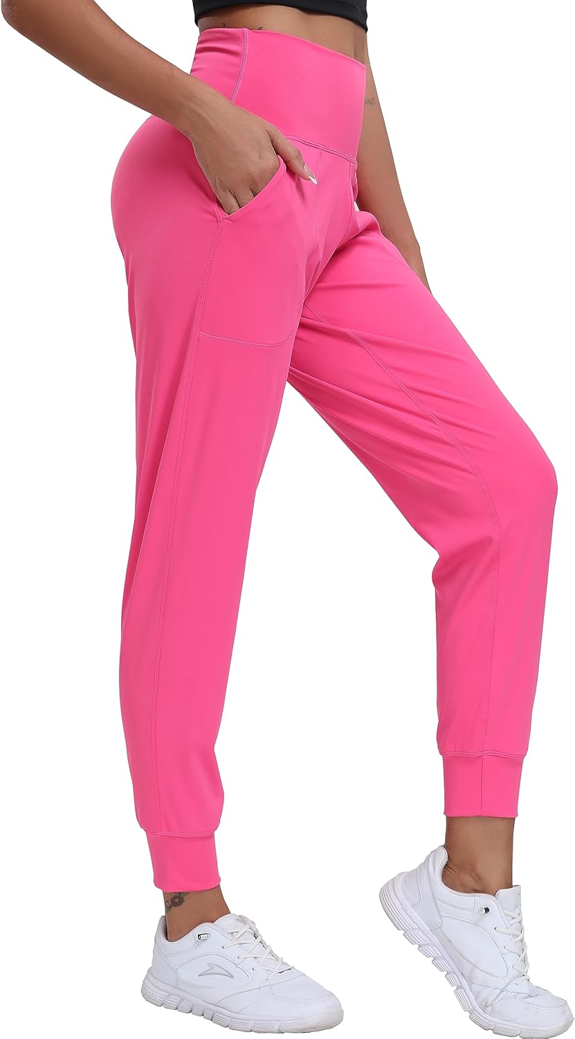 Oalka Women's Joggers High Waist Yoga Pockets Sweatpants Sport Workout Pants