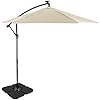 HOMES: Inside + Out Basilisk 9.8' Cantilever Outdoor Umbrella with Base Included, Led Trip Light, Tilt Adjustable, Polyester Canopy for Pool, Deck, Garden, Lawn, Canvas Stone